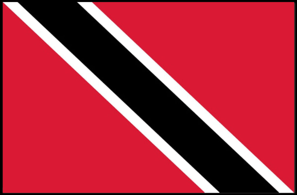 Celebrate Trinidad and Tobago with a bold, minimalist poster from PosterGoat that turns national pride into modern wall art. Vivid red fields frame a strong diagonal black band edged by slim white borders—an iconic, high-contrast composition that commands attention in living rooms, kitchens, offices, or social spaces.