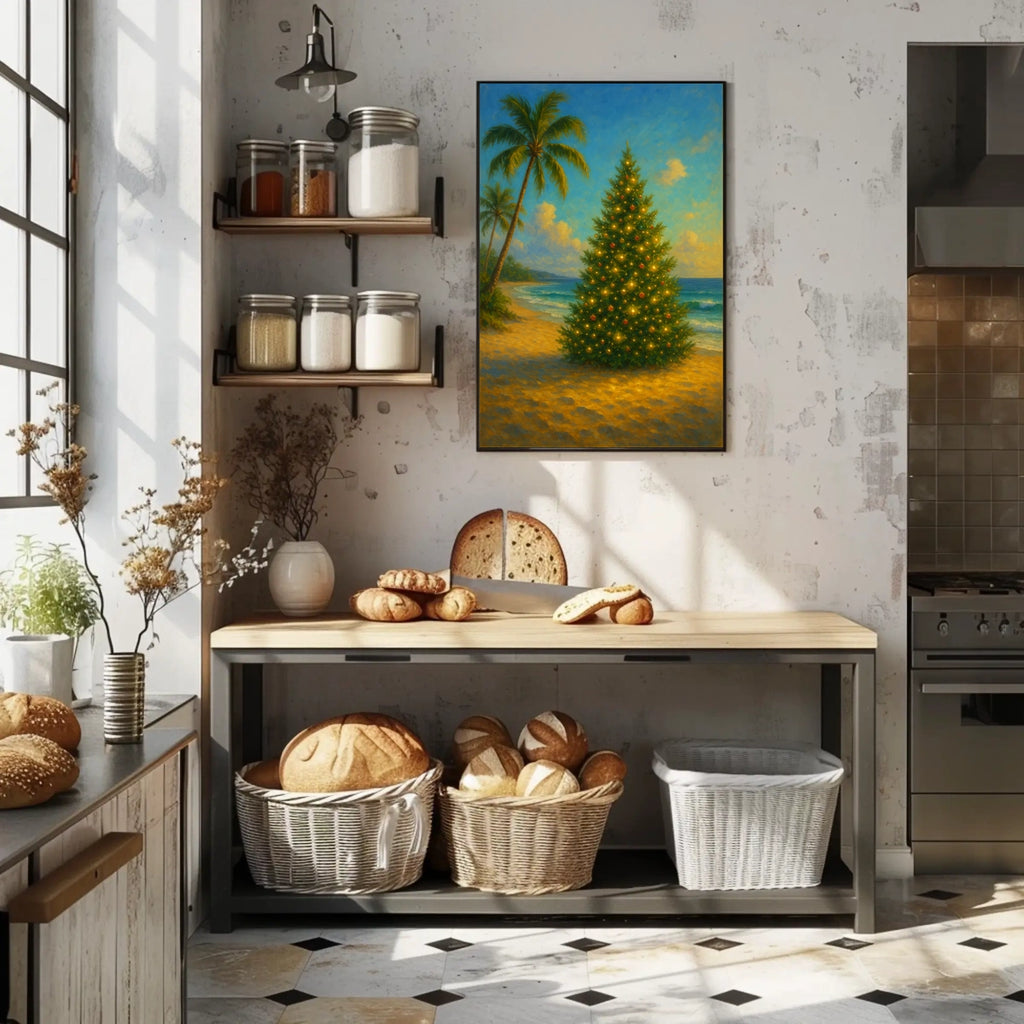 This tropical-inspired art print adds charm to any room with visuals inspired by real-world scenery, blending festive cheer with exotic warmth. Perfect for living rooms, bedrooms, home offices, or classrooms seeking a touch of holiday glow and travel-inspired style.