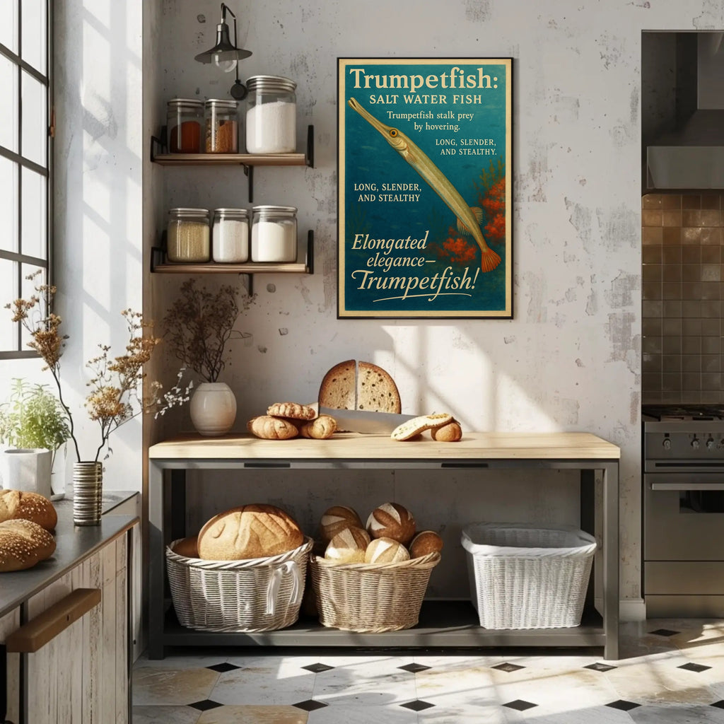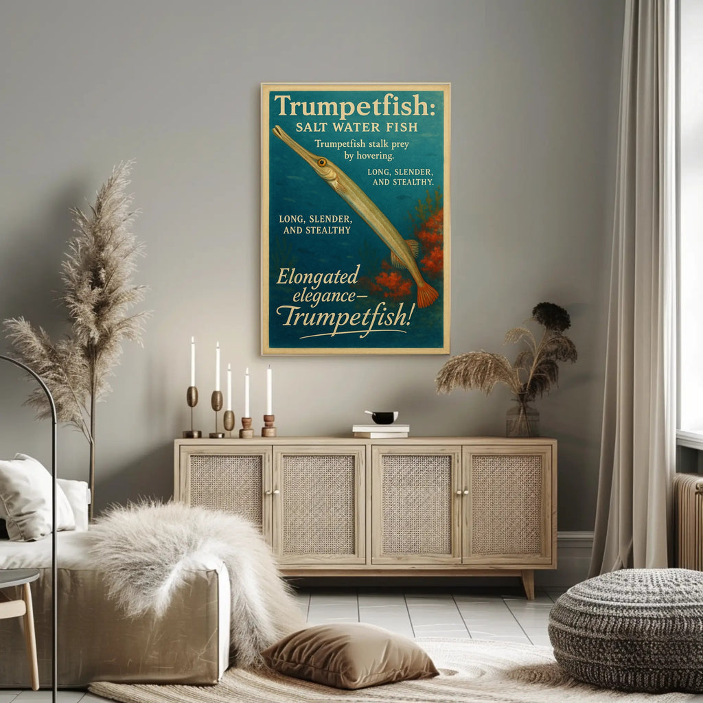 Enhance your home decor with this stunning Trumpetfish The Stealthy Saltwater Poster. Its captivating design is sure to spark conversations and admiration. Don't miss out on the opportunity to bring the ocean's beauty into your space—order yours today and experience the elegance of the underwater world!