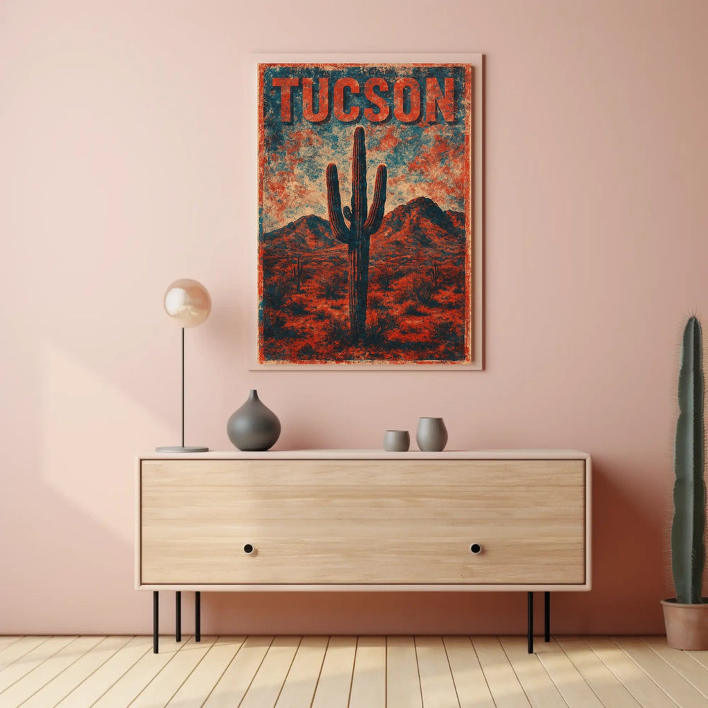 The Tucson Desert Vibes Poster captures the essence of desert-inspired scenery, designed for décor lovers and wanderlust spirits. This art print adds charm to any room, bringing Tucson-inspired visuals to your space and serving as desert wall art that resonates with travelers and home decorators alike.