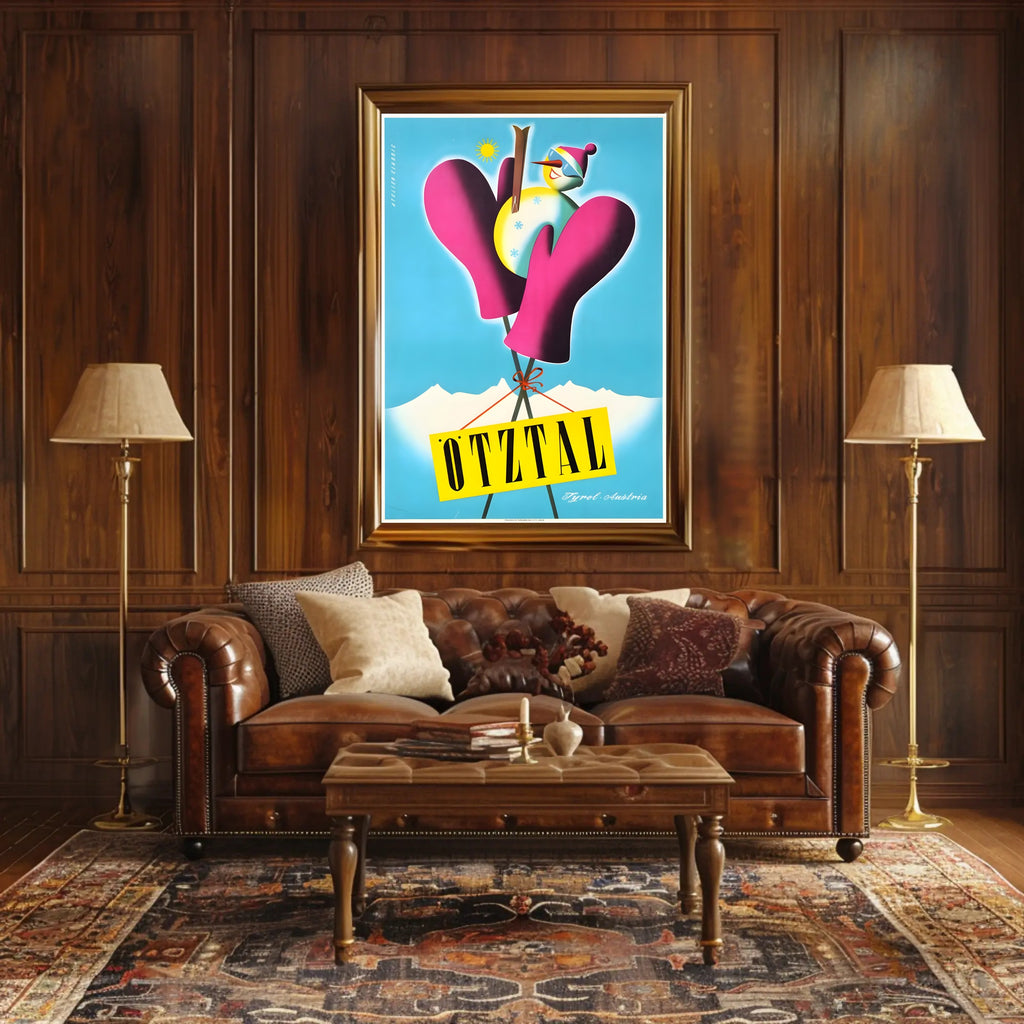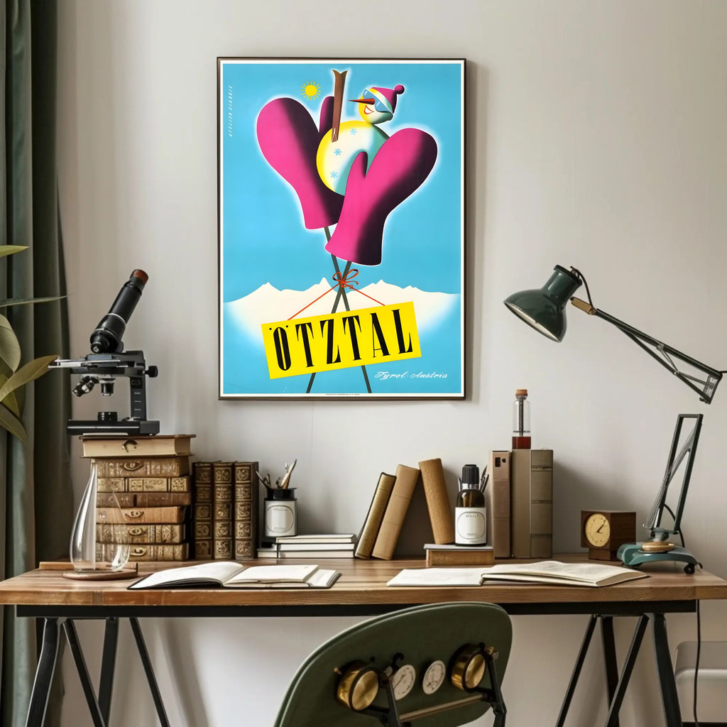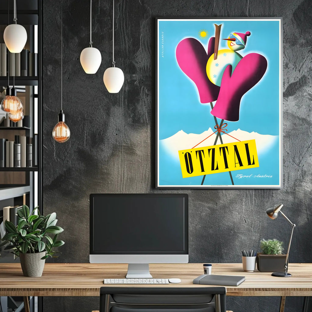 Why you’ll love it: The poster blends nostalgic travel-poster charm with modern, minimalist flair — bright, high-contrast colors and clean shapes that pop on living room, entryway, or office walls. It’s an ideal Austria print and winter decor piece that doubles as a souvenir-style travel poster celebrating Ötztal’s alpine spirit.