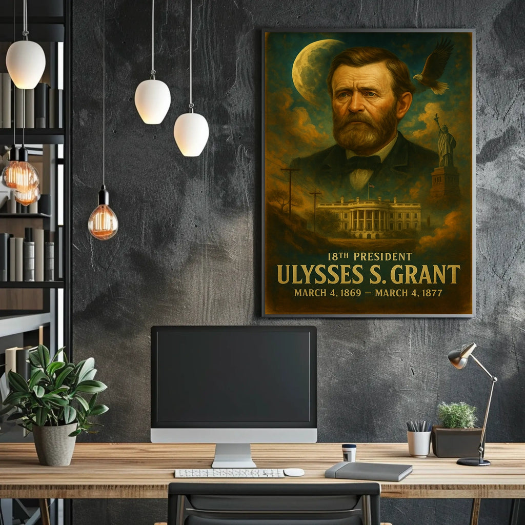 Celebrate the beauty of Ulysses S. Grant 18th President of the United States Presidential Neoclassical Realism Poster with this timeless wall art. Designed to capture its enduring appeal and the era's refined aesthetic, this piece is perfect for collectors, history enthusiasts, or anyone who wants to bring meaning and inspiration into their space.