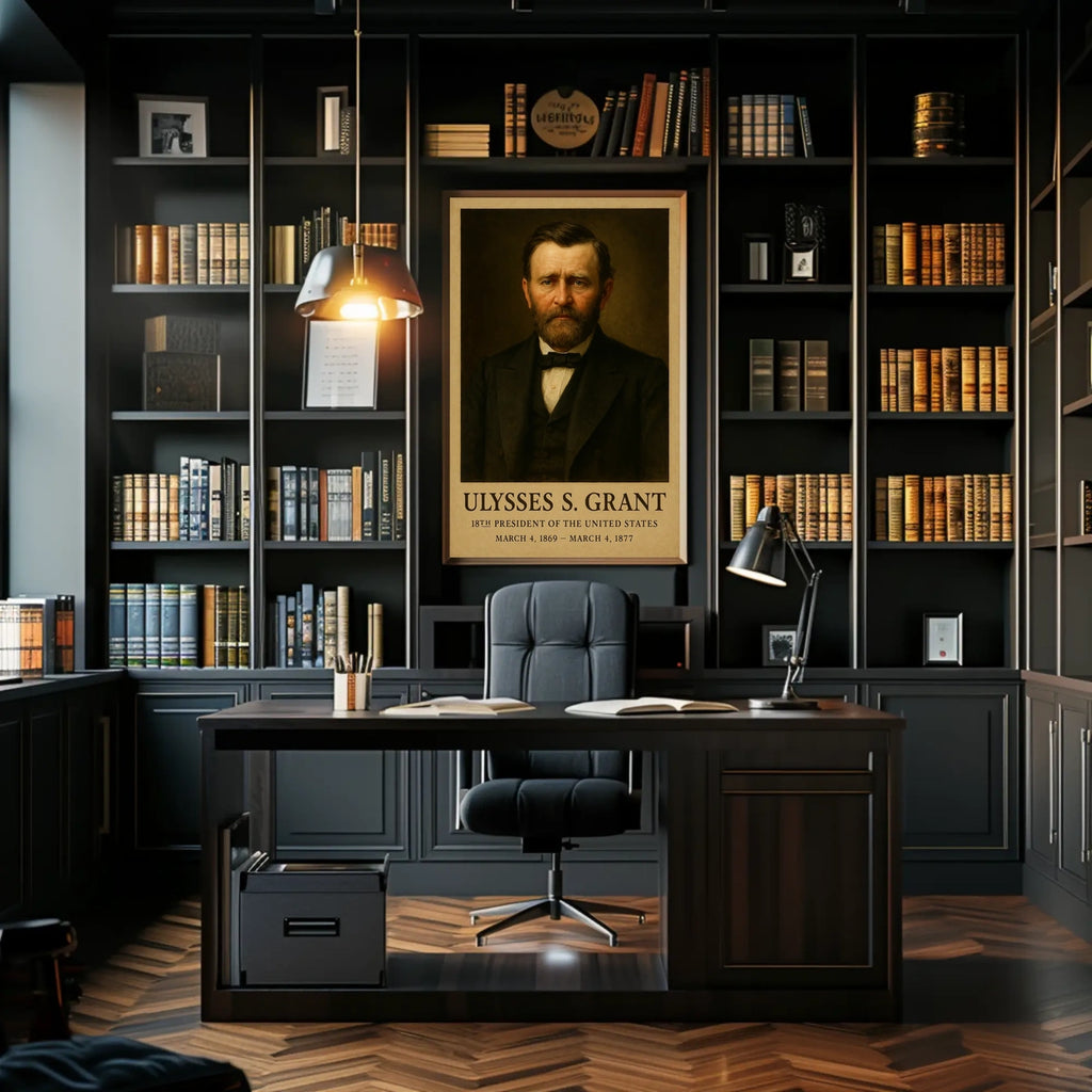 Display this Ulysses S. Grant poster to celebrate a pivotal era in American history. Whether in a study, classroom, or office, it serves as a sophisticated reminder of leadership, legacy, and the enduring impact of the late 19th century presidency. Add this collectible artwork to your collection and let the conversation begin.