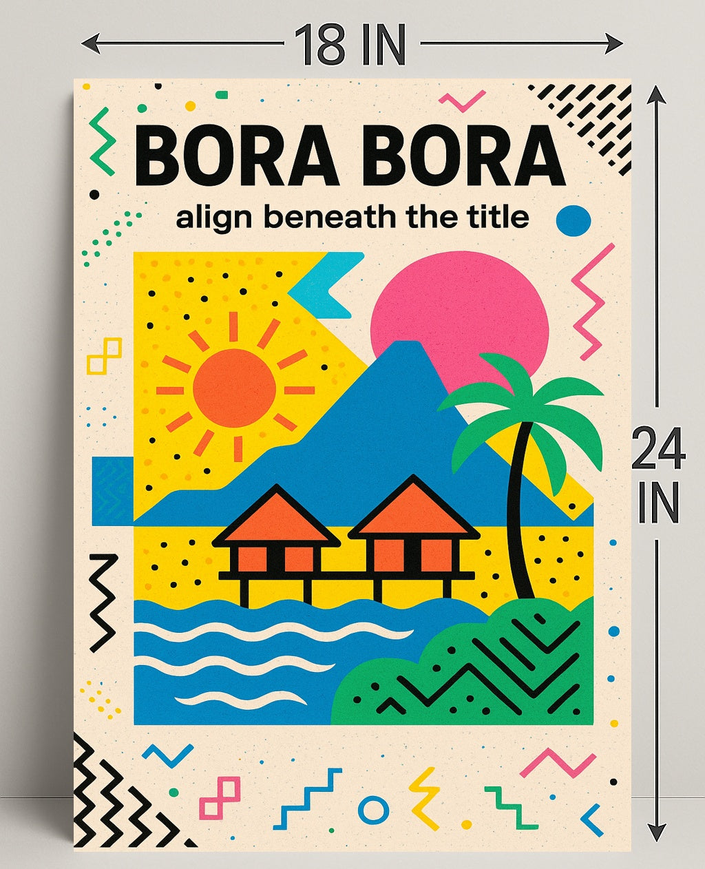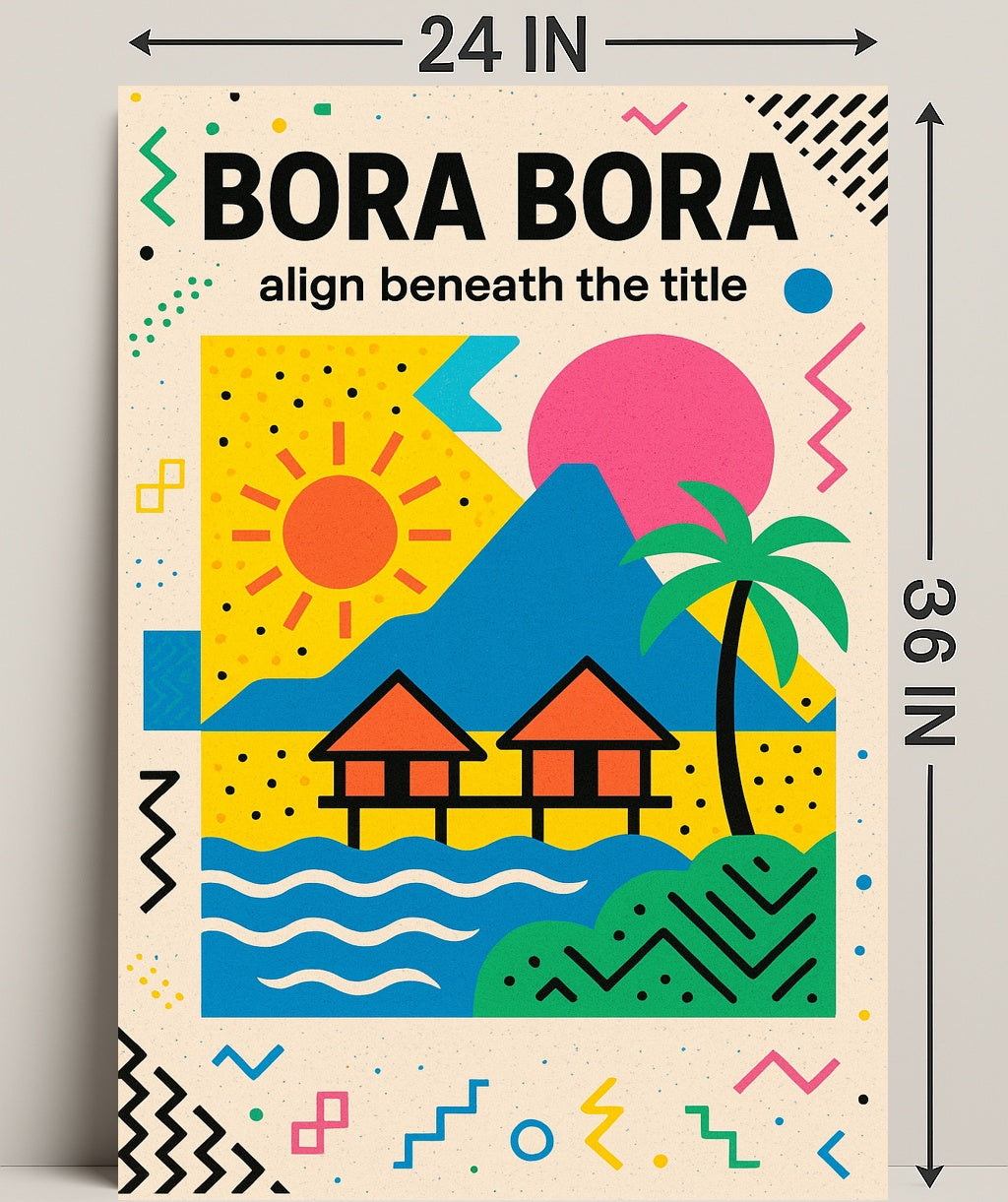 Experience the beauty and simplicity of Bora Bora with our simplistic pop poster. Featuring a stunning design, this poster is perfect for adding a touch of paradise to any room. Enjoy the benefits of a relaxing, tropical atmosphere with this eye-catching piece.Uncategorized Visual Poster - Elevate Your Space