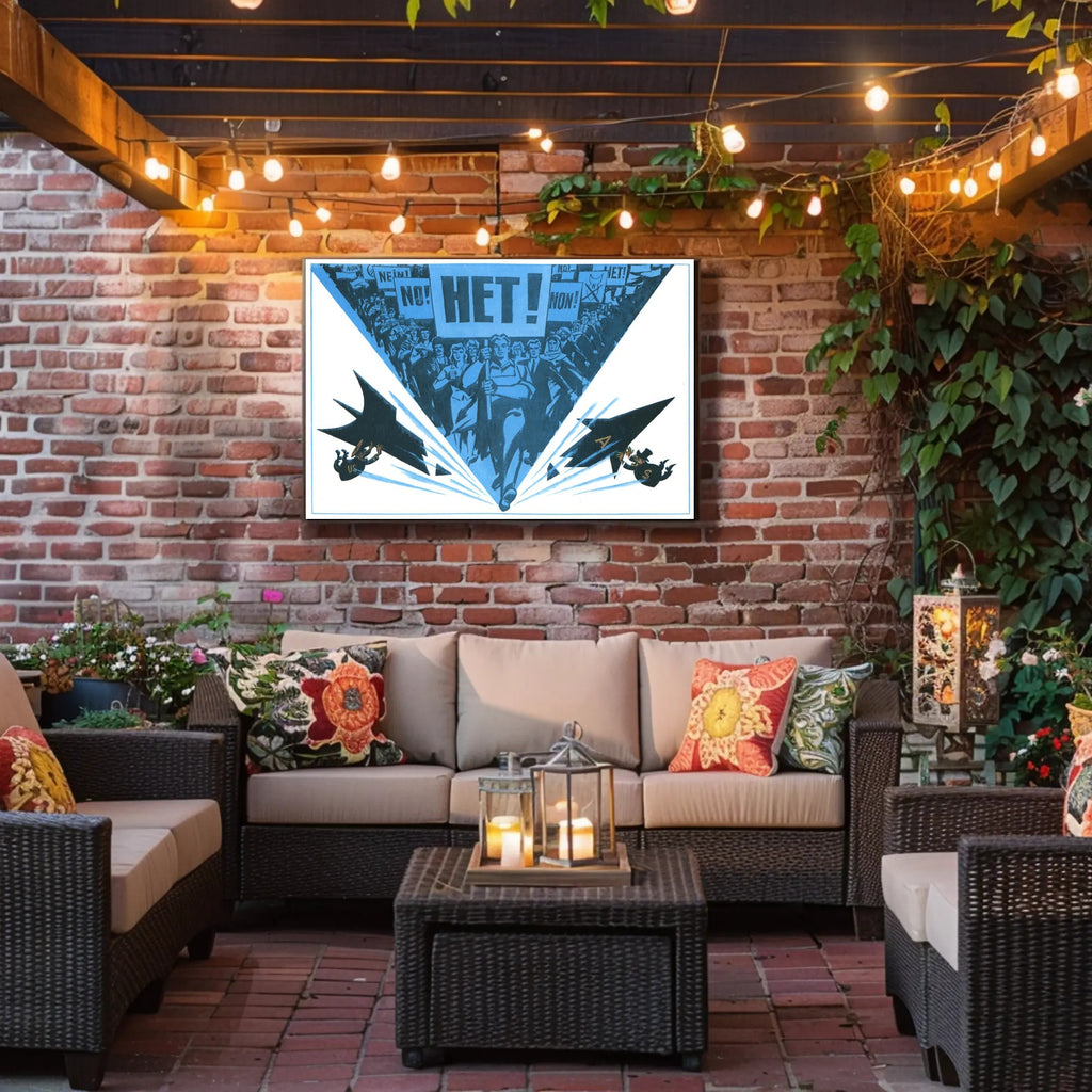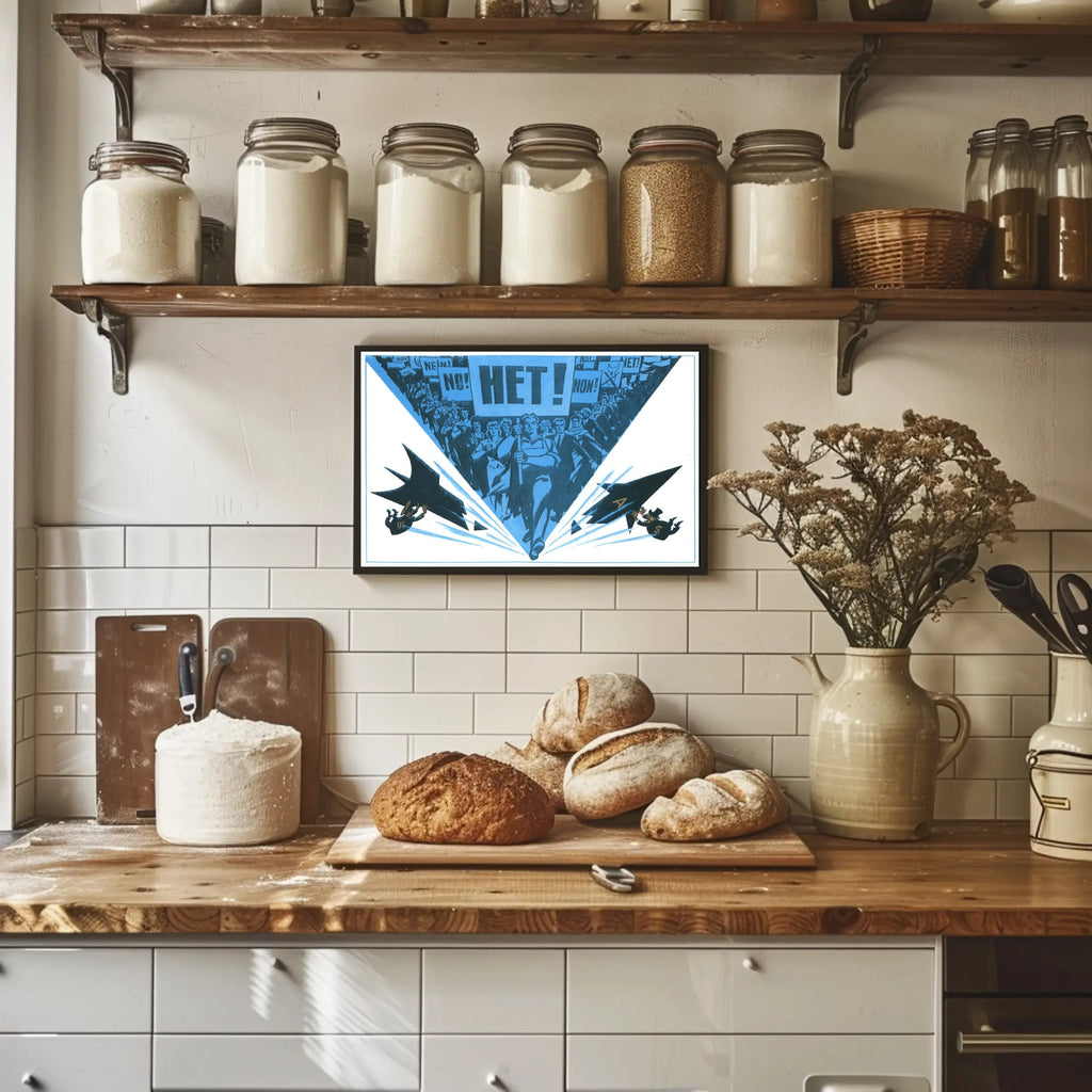 Bring a bold piece of history and striking graphic energy to your walls with the United Resistance Poster from PosterGoat. This 18x24 poster features a dramatic, blue-toned protest scene—marching figures carrying a powerful "HET!" banner, sharp angular silhouettes and dynamic rays that slice across the composition—making it an instant focal point in any Home & Garden decor collection.