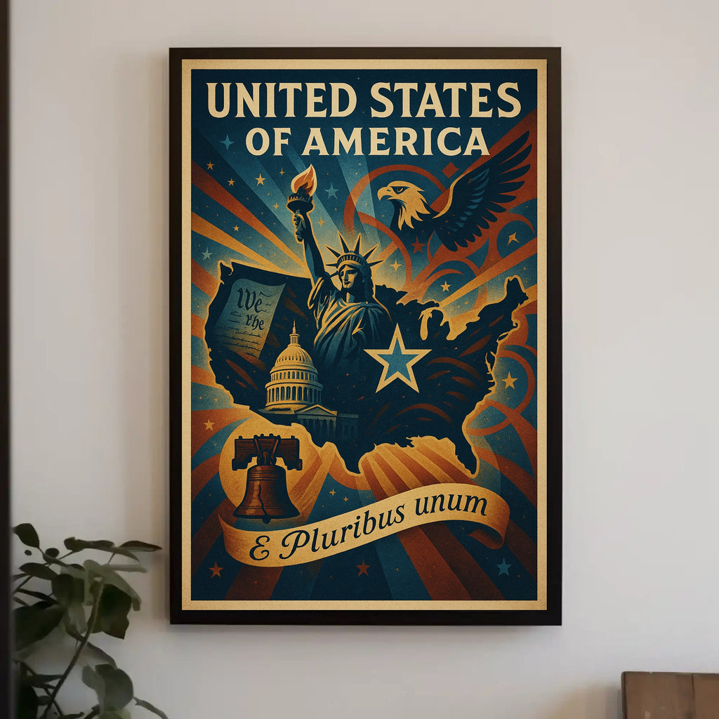Add the United States of America E Pluribus Unum Poster to your cart now — proudly made by PosterGoat and ready to elevate your walls.