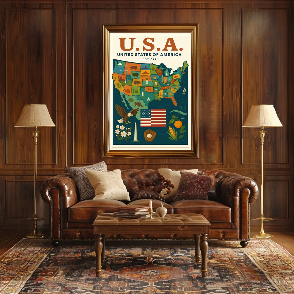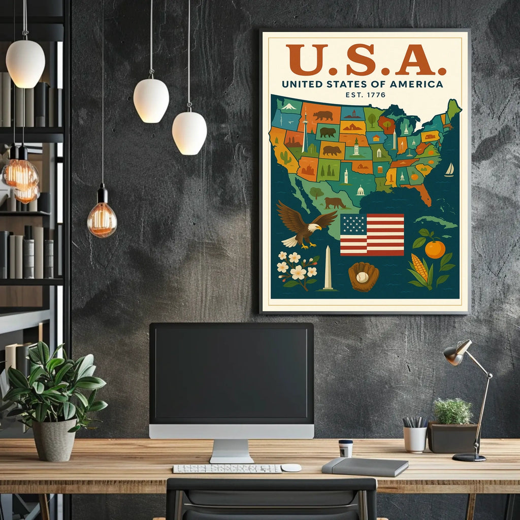 Celebrate history and wanderlust with the United States Of America Est. 1776 Poster. This art print captures a timeless Americana vibe, blending patriotic charm with scenic visuals to elevate any room—from living spaces to home offices.