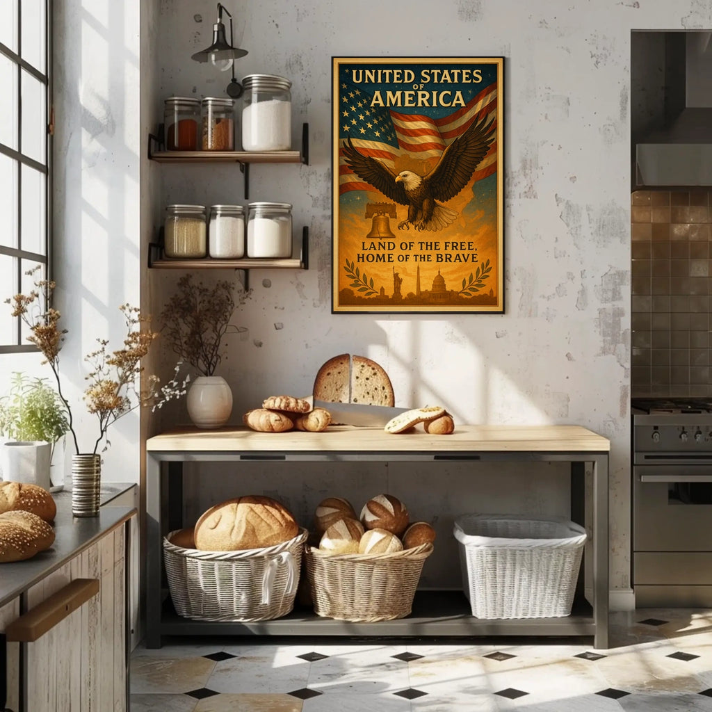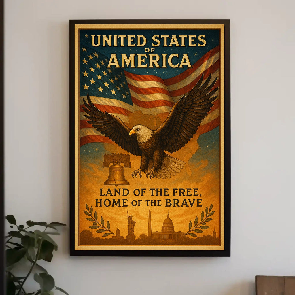 Bring a touch of wanderlust and patriotism into any room with this Land of the Free poster. It’s a casually stylish print that works in living rooms, bedrooms, or home offices. The minimalist, typography-inspired design stays calm and chic, so it pairs with a wide range of color schemes. It’s also easy to hang—no complicated setup needed.