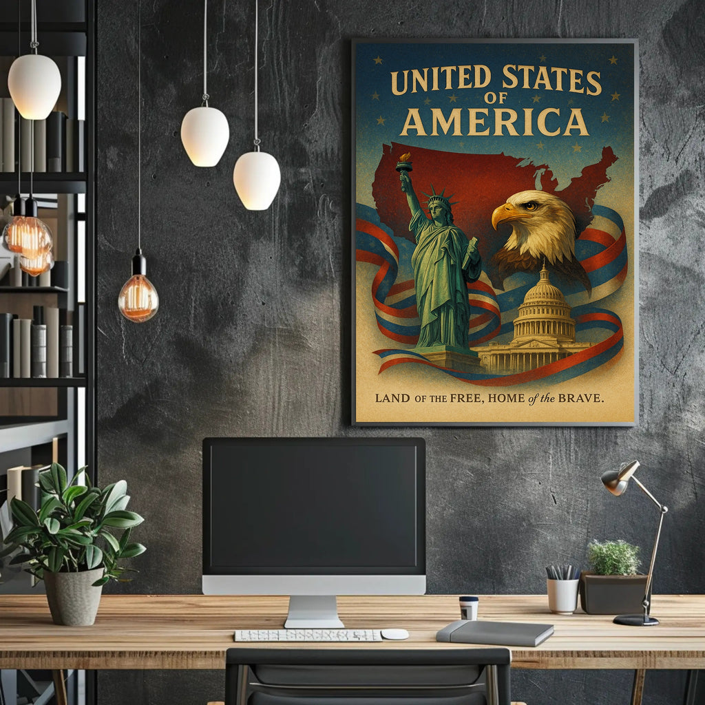 Transform your space with the United States of America Land of the Free Poster. With its striking visuals and meaningful message, it’s more than just decor; it's a piece of art that speaks to the heart. Don’t miss out on this opportunity to enhance your home – order yours today!