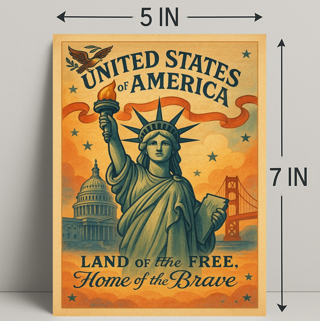 - Vibrant Imagery: Features the iconic Statue of Liberty, symbolizing hope and freedom, set against a picturesque American backdrop.