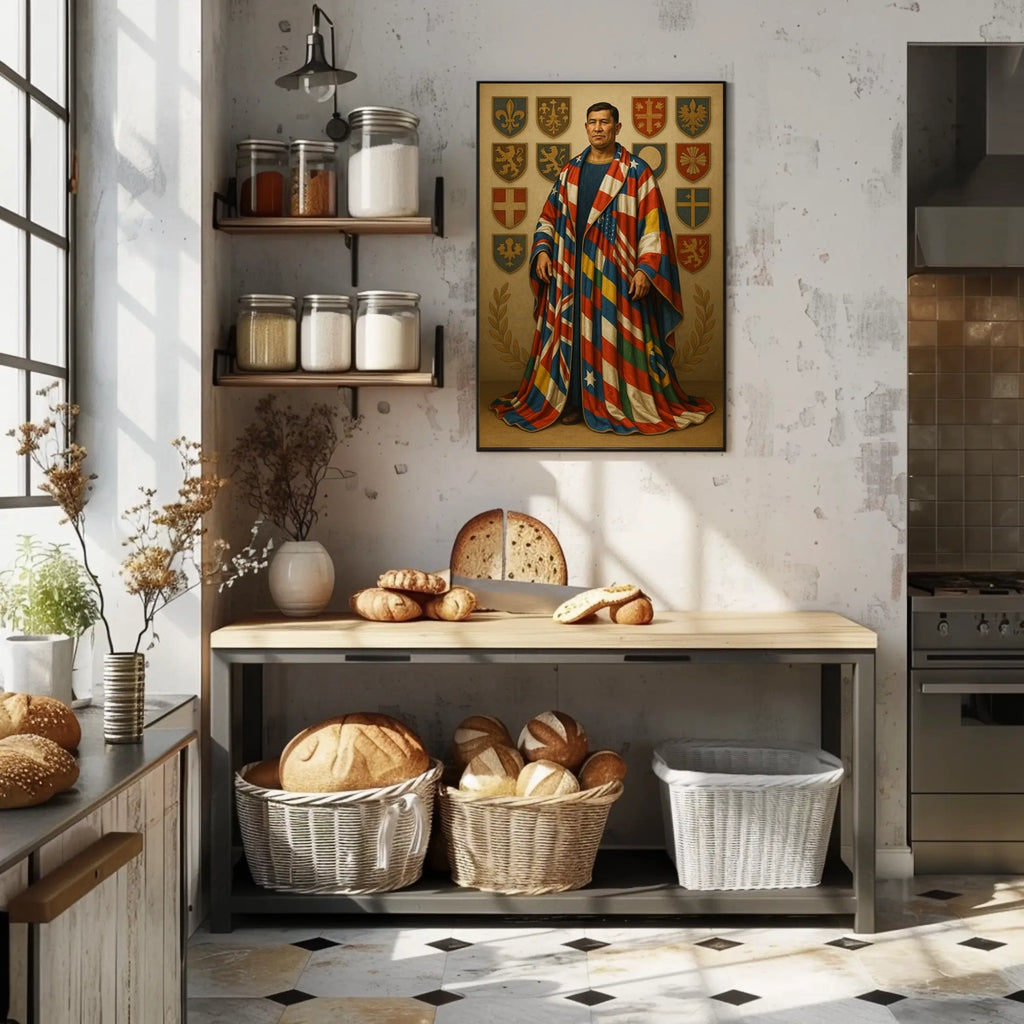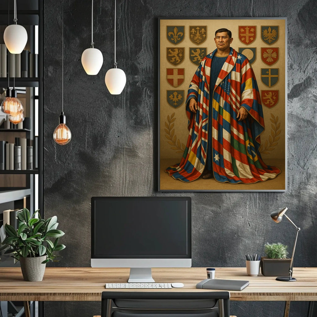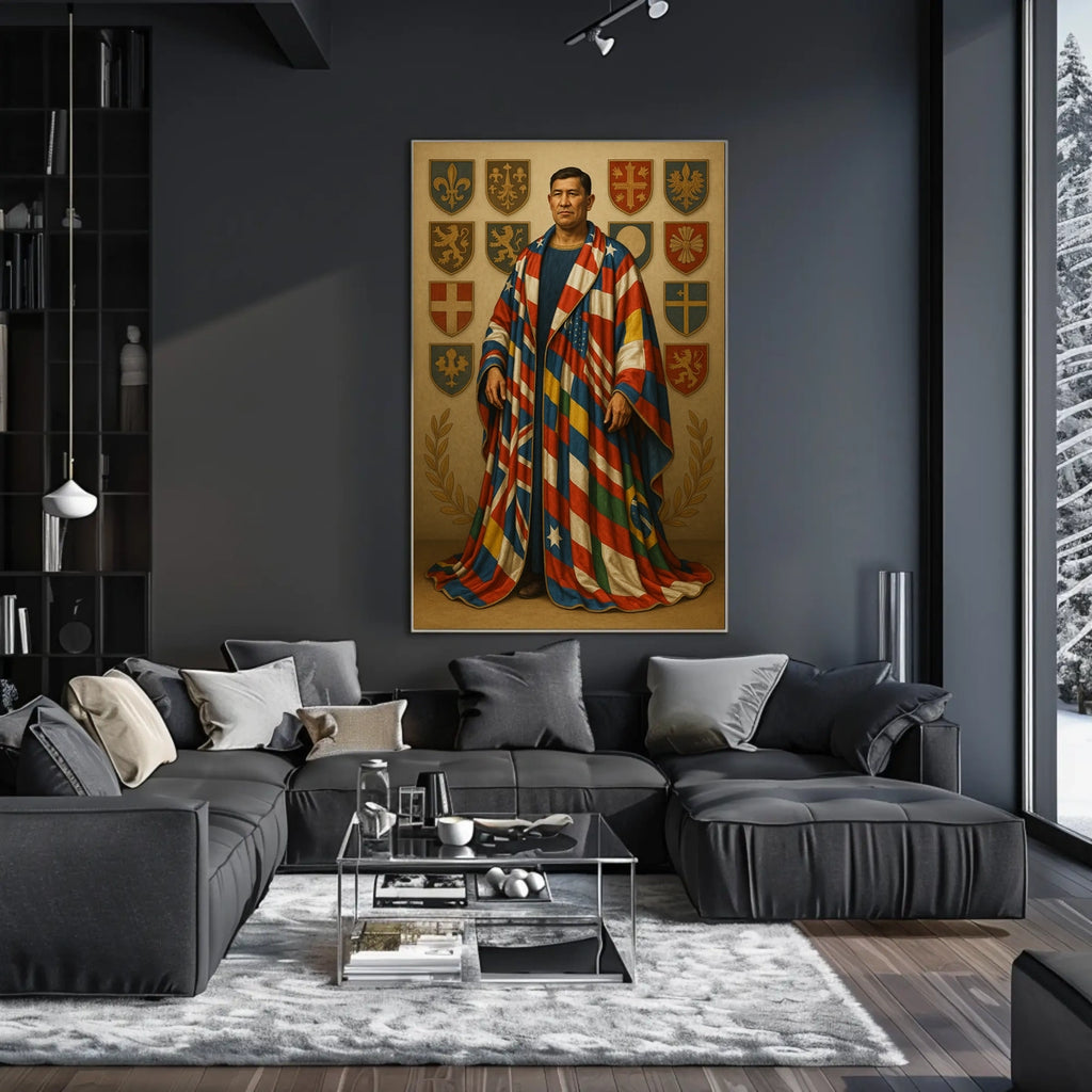 Symbolic, flag-robed design — visually communicates inclusion and cultural diversity, turning any wall into a bold statement of multicultural pride.