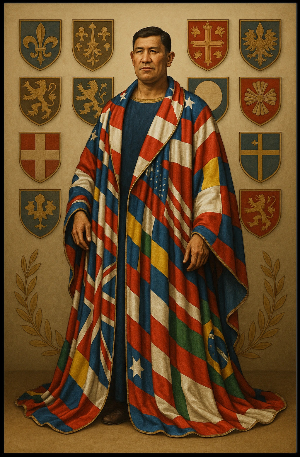Celebrate global unity and cultural diversity with this captivating artwork. Featuring a figure draped in a robe of international flags, this poster honors multiculturalism and inspires harmony in homes, classrooms, and workspaces.