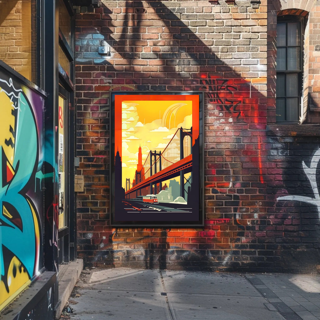 Add the Urban Bridge Art Deco Poster to your collection and transform any wall into a scene of city romance and architectural drama—order now from PosterGoat to bring the journey home.