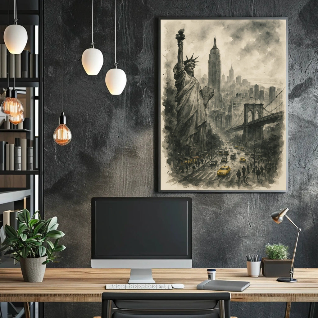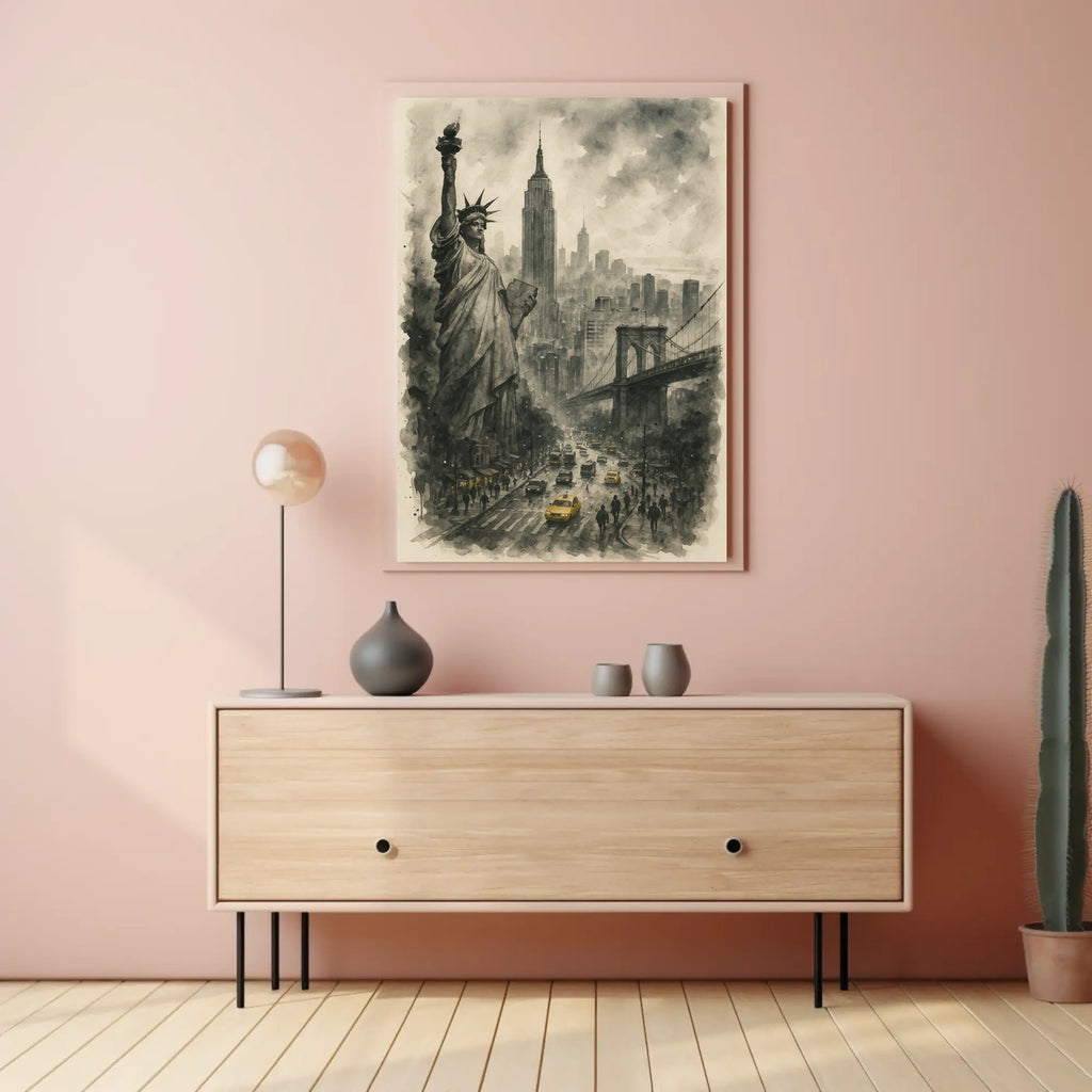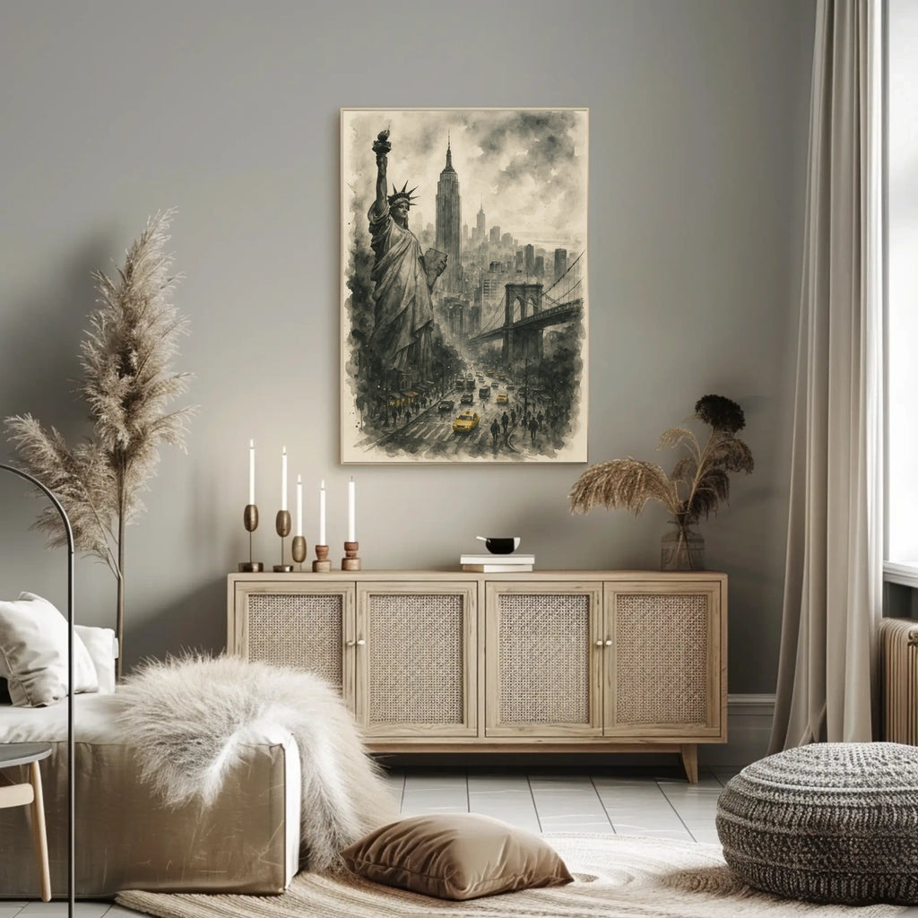 Urban Majesty captures NYC energy in a single, striking piece. Its timeless design and versatile palette elevate any space. Ready to transform your walls? Add this poster to your cart now and enjoy enduring New York charm.
