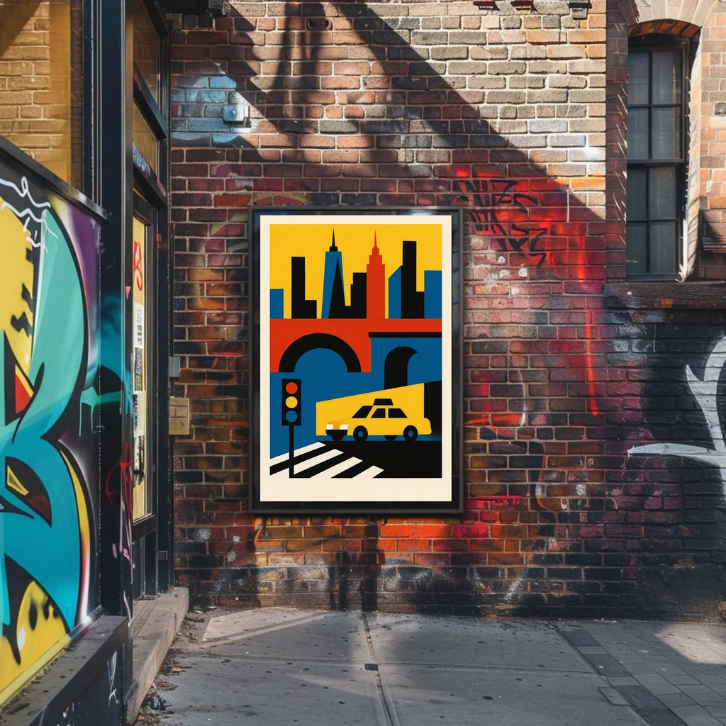 Dive into the heart of the city with Urban Symphony, a vibrant geometric poster that captures urban life through bold lines and luminous color. Showcasing iconic skyscrapers and a classic yellow taxi, this artwork brings metropolitan energy and contemporary flair to any space.