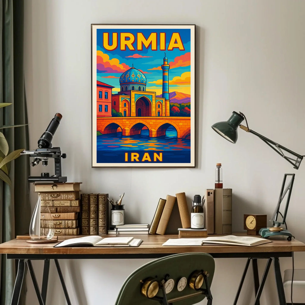 Perfect as a decorative souvenir or thoughtful gift for explorers and dreamers, the Urmia, Iran Vibrant Travel Poster adds character and charm to any gallery wall.