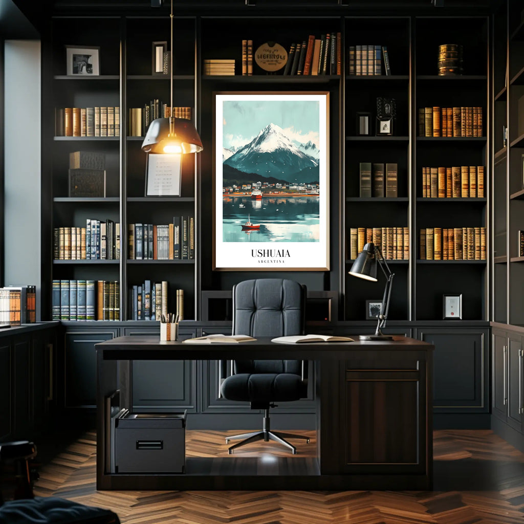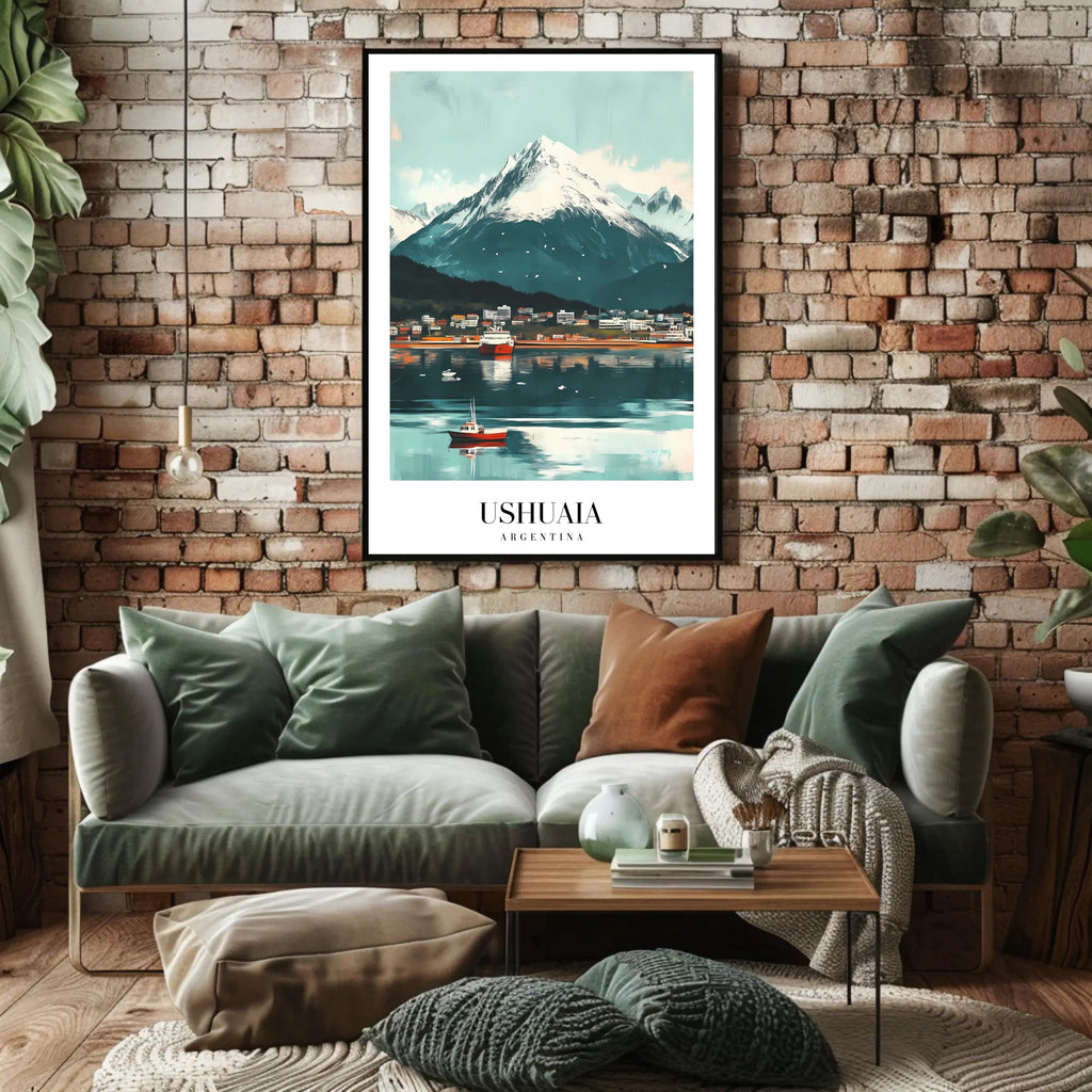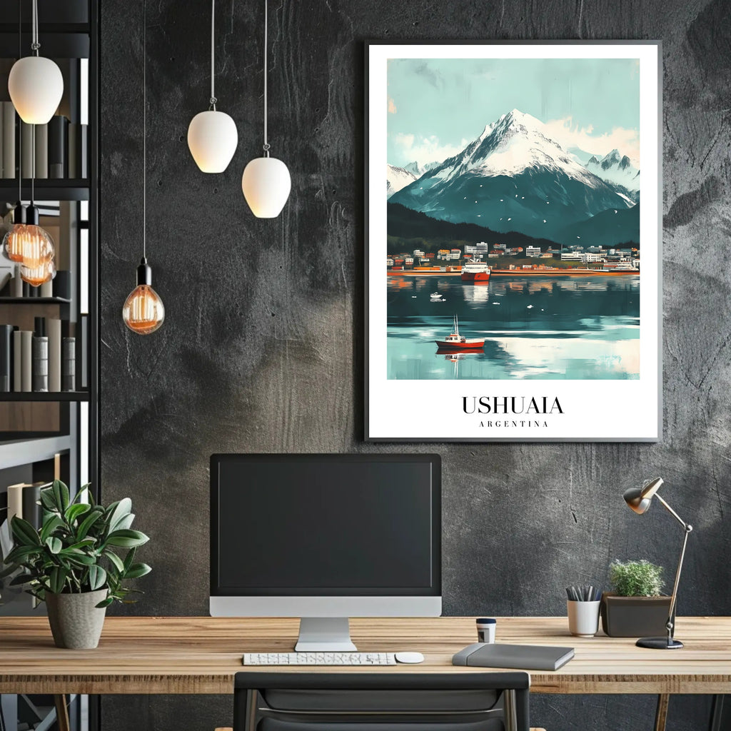 Why you'll love it: The poster's calming aqua and deep-forest palette creates an instant focal point, while the crisp illustration style and crisp reflections deliver gallery-quality impact without overwhelming your space. Ideal for living rooms, offices, or travel-themed galleries, this Ushuaia poster evokes adventure and quiet sophistication.
