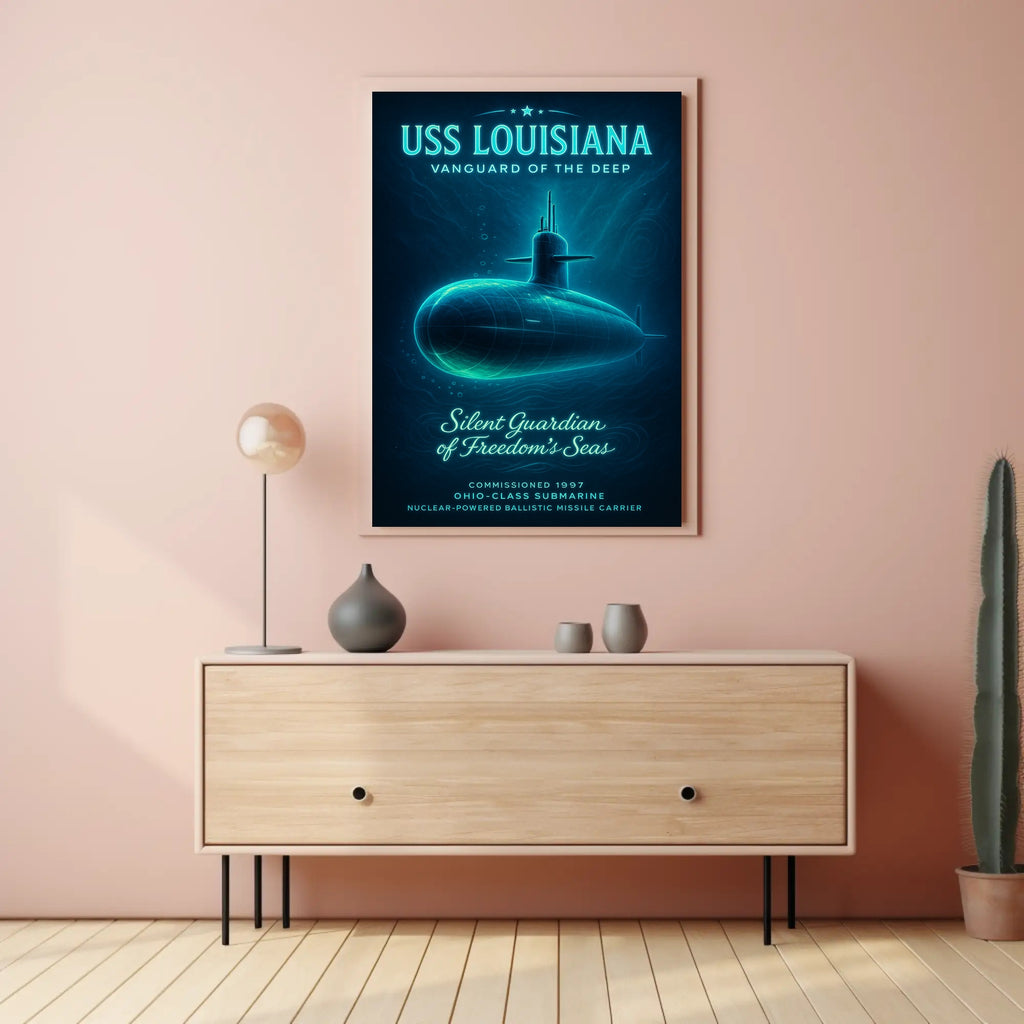 Transform your living space with the stunning USS Louisiana Vanguard of the Deep Poster, an exquisite art print that captures the powerful essence of this iconic Ohio-class submarine. Perfect for decor enthusiasts and those with a sense of adventure, this captivating poster adds a touch of charm and sophistication to any room, making it an ideal choice for anyone who appreciates unique wall art.