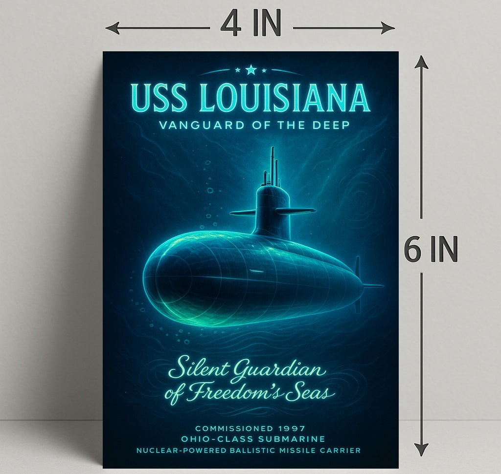 In summary, the USS Louisiana Vanguard of the Deep Poster is more than just a decoration; it’s a statement piece that reflects strength and artistry. Elevate your decor with this stunning artwork today and experience the beauty for yourself!