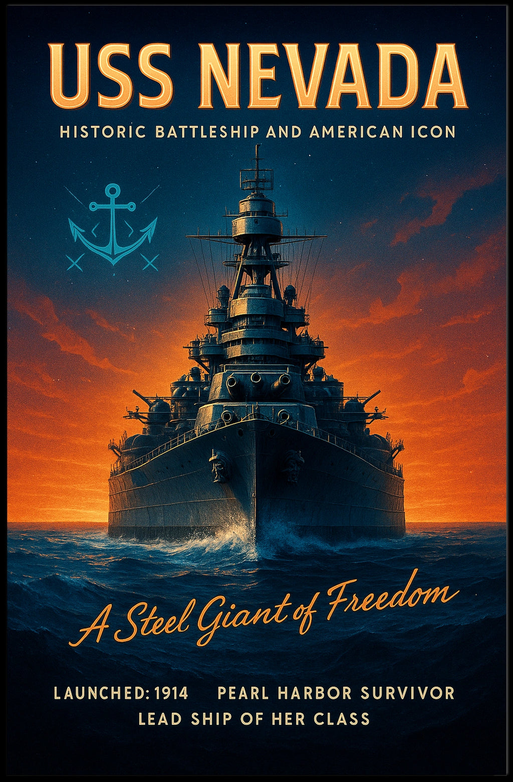 Celebrate the legacy of the USS Nevada, a steel giant of freedom launched in 1914. As a Pearl Harbor survivor and the lead ship of her class, it stands as a pillar of resilience, naval history, and engineering brilliance. This tribute appeals to American history buffs, battleship enthusiasts, and collectors who value maritime heritage.
