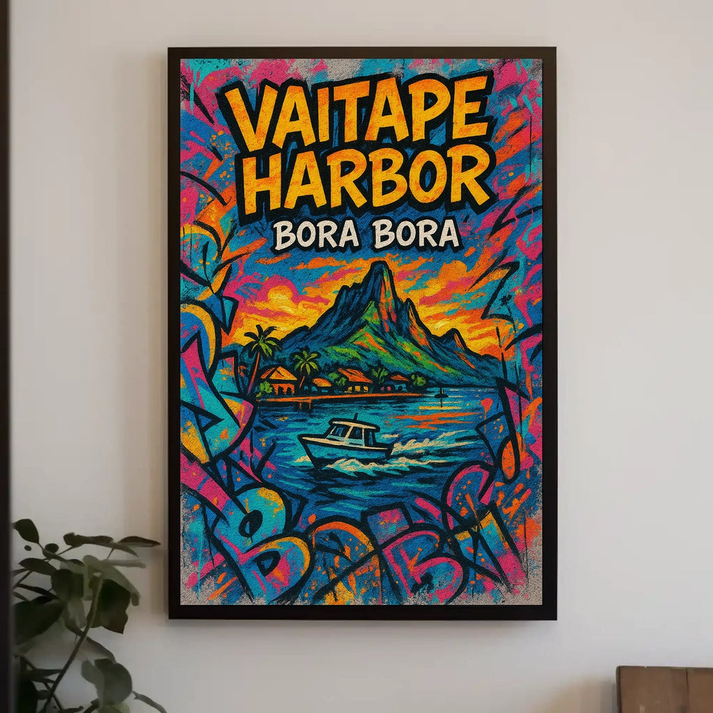 Bring the magic of Vaitape Harbor Bora Bora to your home with this striking poster. It enhances any space with color, character, and a sense of vacation days all year round. Ready to transform your walls? Shop now and claim your coastal escape today.