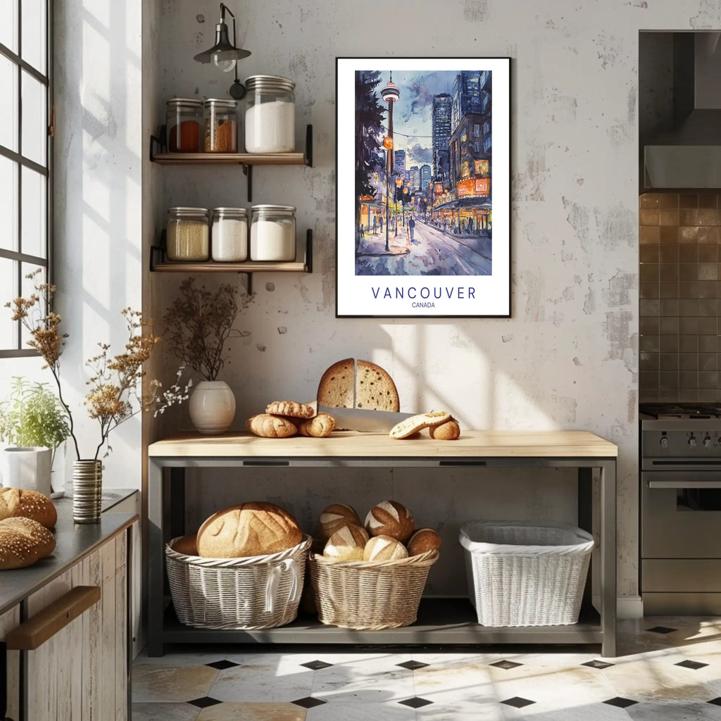 - Gallery-ready presentation: Clean white border with bold "VANCOUVER • CANADA" typography gives a contemporary, framed appearance straight from the poster.