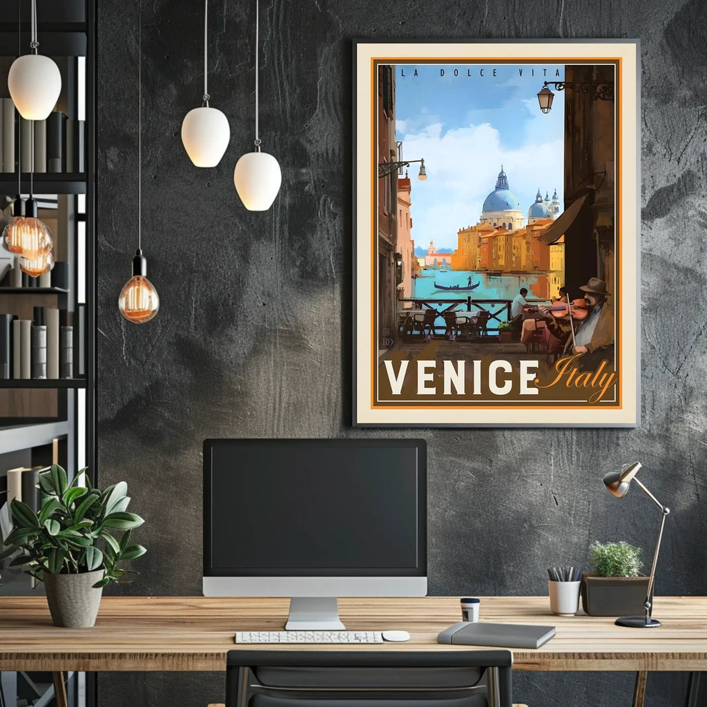 Transport your space to the romantic canals of Venice with this Venice, Italy La Dolce Vita poster. Crafted for decor lovers and wanderlust spirits, this art print blends classic Italian charm with modern print quality to brighten any room. Its timeless scene and warm tones evoke sunset strolls along the Grand Canal. A stylish wall art piece and thoughtful gift for art lovers and travelers.