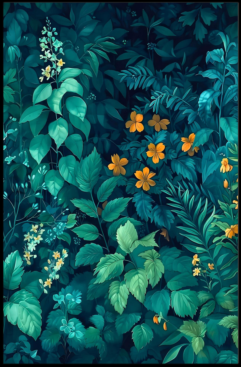 Bring a tranquil, gallery-quality focal point to your home with the Verdant Serenity Wall Art Print from PosterGoat. This exquisite poster captures a lush tapestry of teal foliage and warm golden blooms rendered in a minimalist, artful style—an instant mood-setter for living rooms, bedrooms, or office walls.
