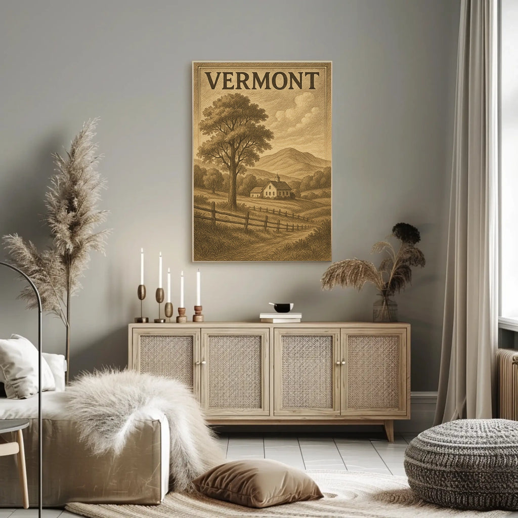 This poster captures the essence of Vermont Landscape. Designed for decor lovers and wanderlust spirits, this art print adds charm to any room with visuals inspired by real-world scenery.
