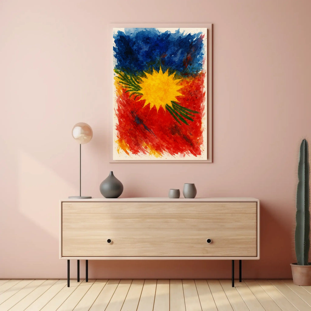 - Printed with precision and made to inspire—this artwork is more than decoration; it’s a conversation piece that connects art, culture, and style. Bring Vibrant Abstract Sunburst into your home, classroom, or office today and let your walls tell a powerful story.