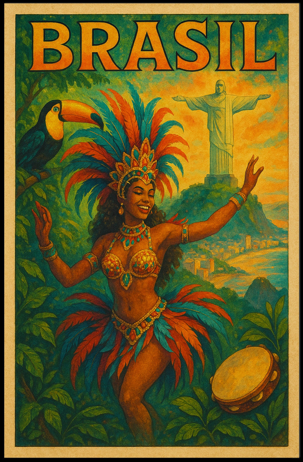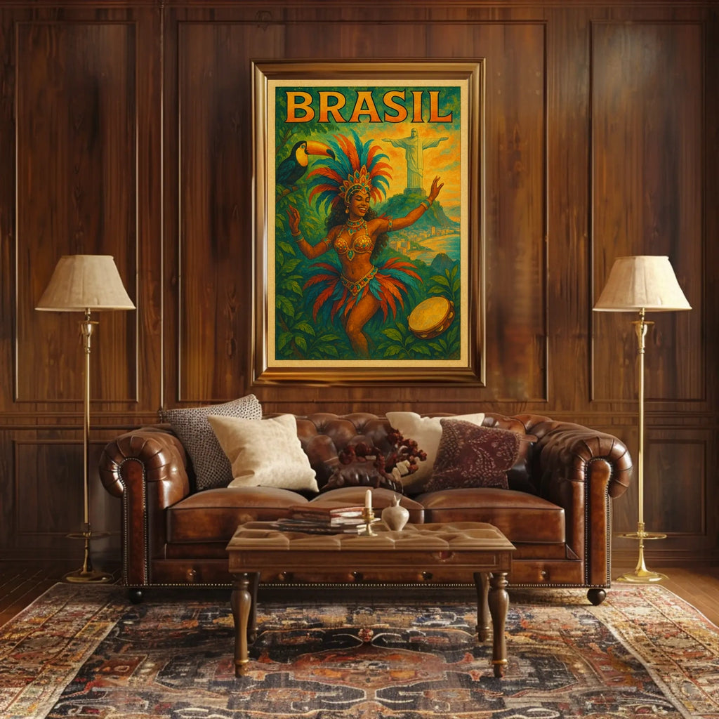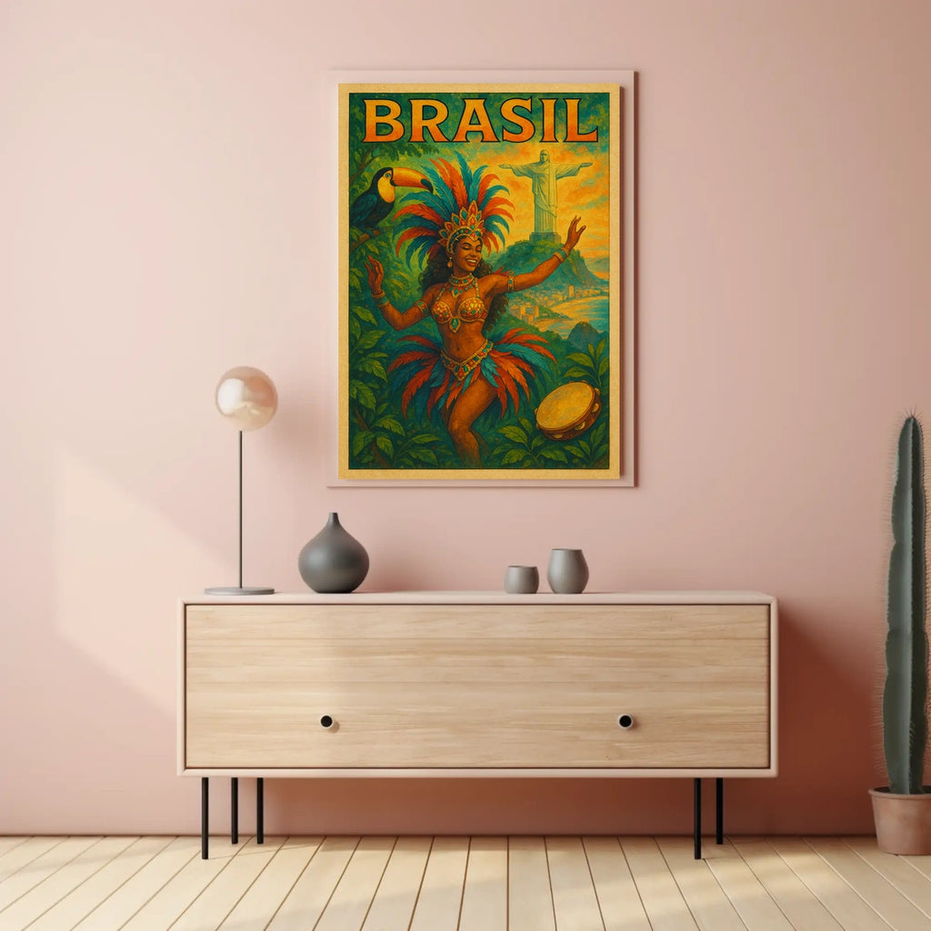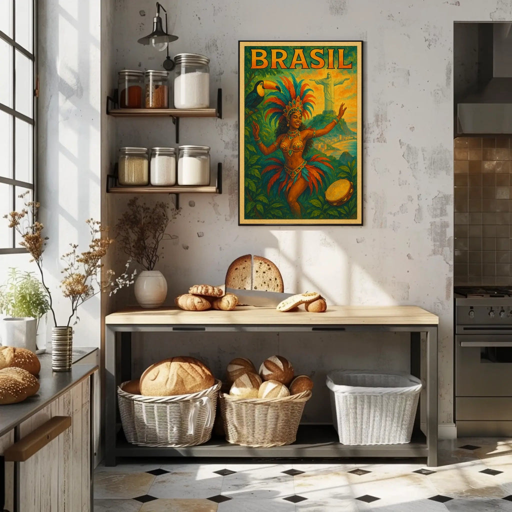 Bring this vibrant Brazil poster home today and refresh your space with color. Add to cart now to transform your walls.