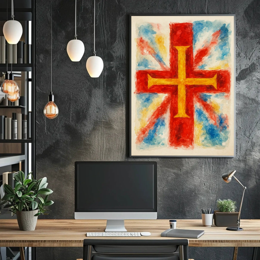 Printed with precision and made to inspire, this artwork is more than decoration—it’s a conversation piece that connects history, culture, and style. Bring Vibrant Cross And Flag into your home, classroom, or office today and let your walls tell a powerful story.