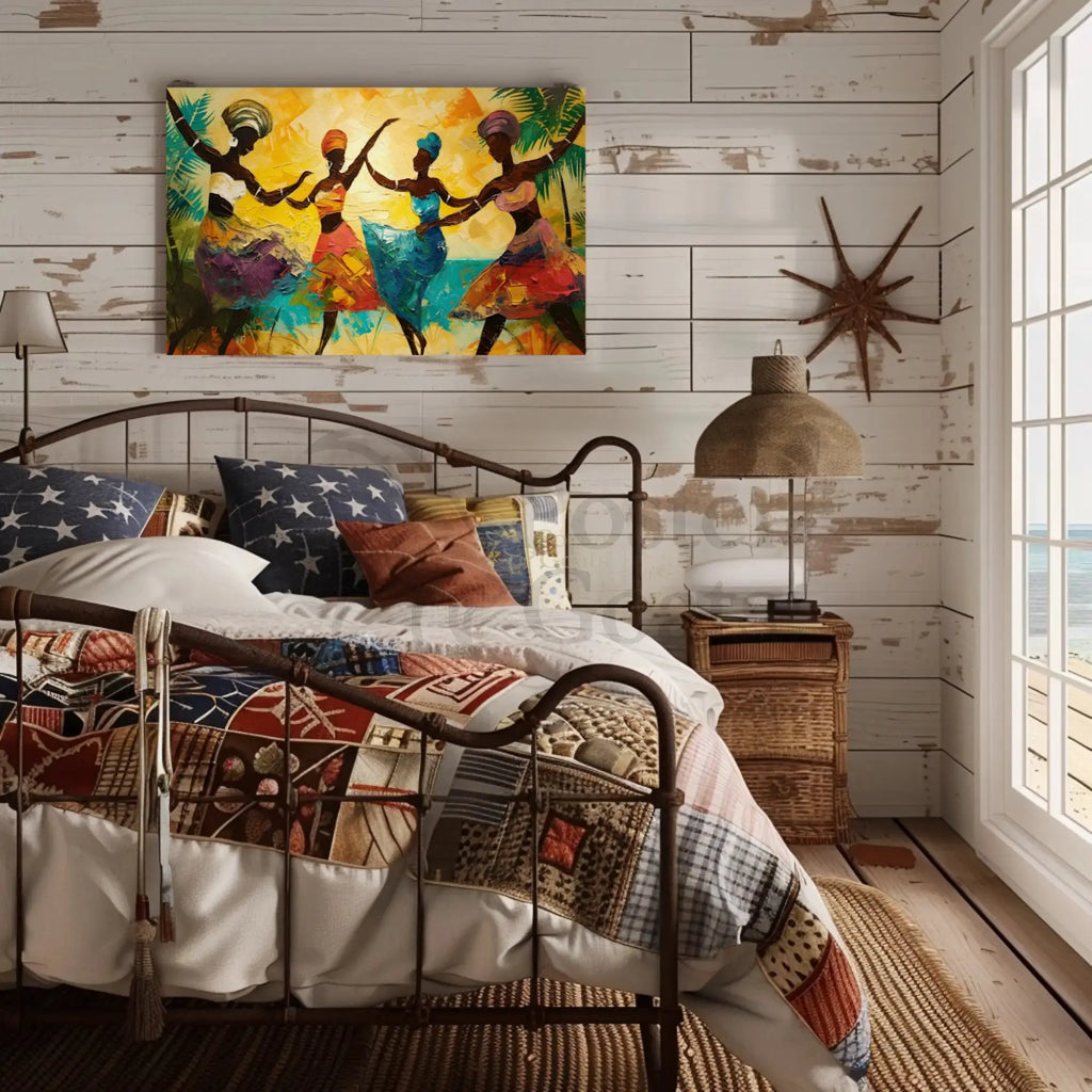 Ready to add movement and color to your walls? Shop the Vibrant Dance Celebration on Tropical Beach Heritage Poster by PosterGoat today and transform any room with joyful, soulful art.