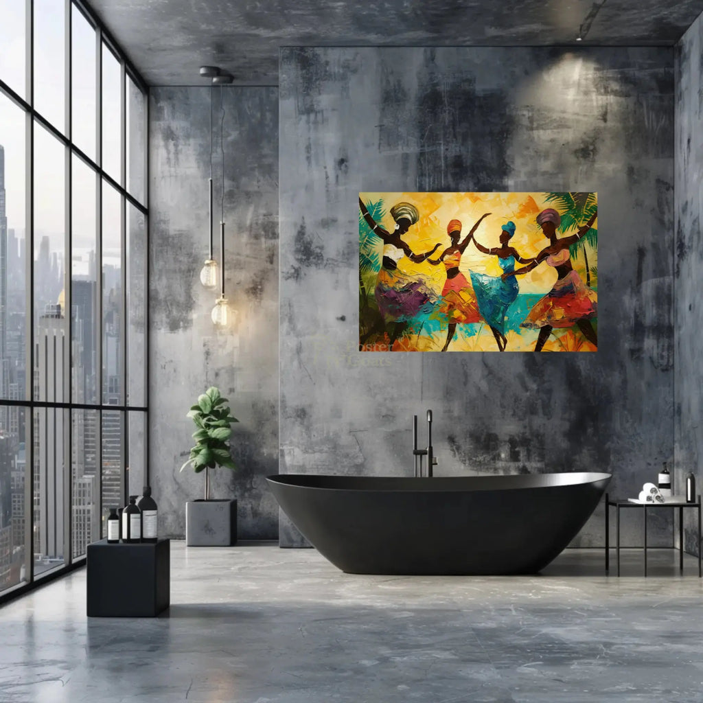 This colorful dance poster is more than decor — it’s a celebration of cultural expression and community energy, rendered in vivid, impressionistic style that complements modern and eclectic interiors alike. Use it to brighten a neutral wall, add warmth to a dark study, or create a focal point in your living space.