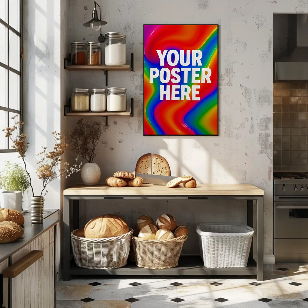 Bring bold color and modern pop-art energy to any room. The Vibrant Design Template Poster from PosterGoat fuses glossy, fluid rainbow swirls with strong white typography for an eye-catching centerpiece that's perfect for home decor, offices, studios, or gallery walls.