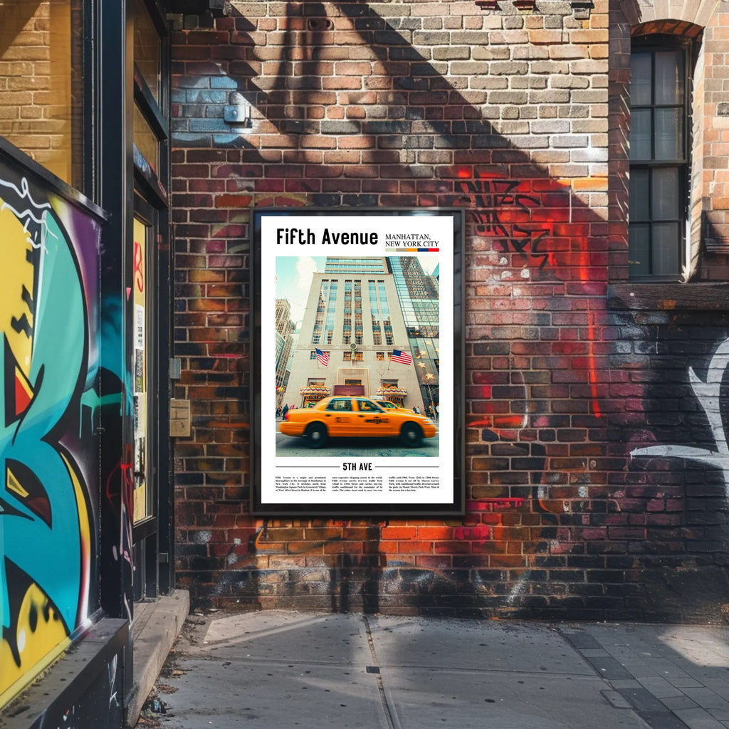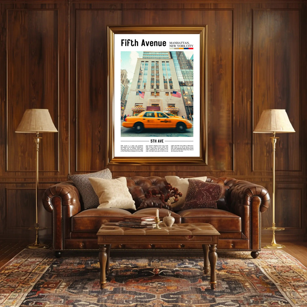 Immerse yourself in the vibrant energy of New York City with our stunning Vibrant Fifth Avenue Street Scene Travel Poster. This exceptional piece of urban artwork captures the bustling essence of the city that never sleeps, featuring an iconic yellow taxi weaving through the dynamic rhythms of urban life. Blending modern skyscrapers with classic architecture, this poster epitomizes the unique charm of Fifth Avenue, making it a perfect addition to any space. Whether you're a travel enthusiast or an admirer of NYC skyline, this poster infuses a lively atmosphere into your home or office decor, celebrating the metropolitan flair of one of the world's most iconic cities.