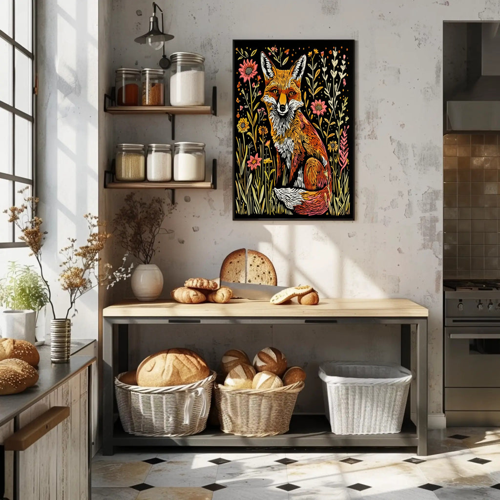 Immerse yourself in the enchanting world of nature with this captivating poster featuring a graceful fox nestled among a vivid array of wildflowers and foliage. This artwork is a celebration of the beauty and vitality of wildlife, brought to life through a modern illustrative style that boasts bold outlines and a kaleidoscope of bright colors. The design radiates a sense of whimsy and wonder, making it a perfect addition to any space seeking a lively and playful touch. Ideal for animal lovers and art enthusiasts, this poster serves as both a visual delight and an artistic statement.
