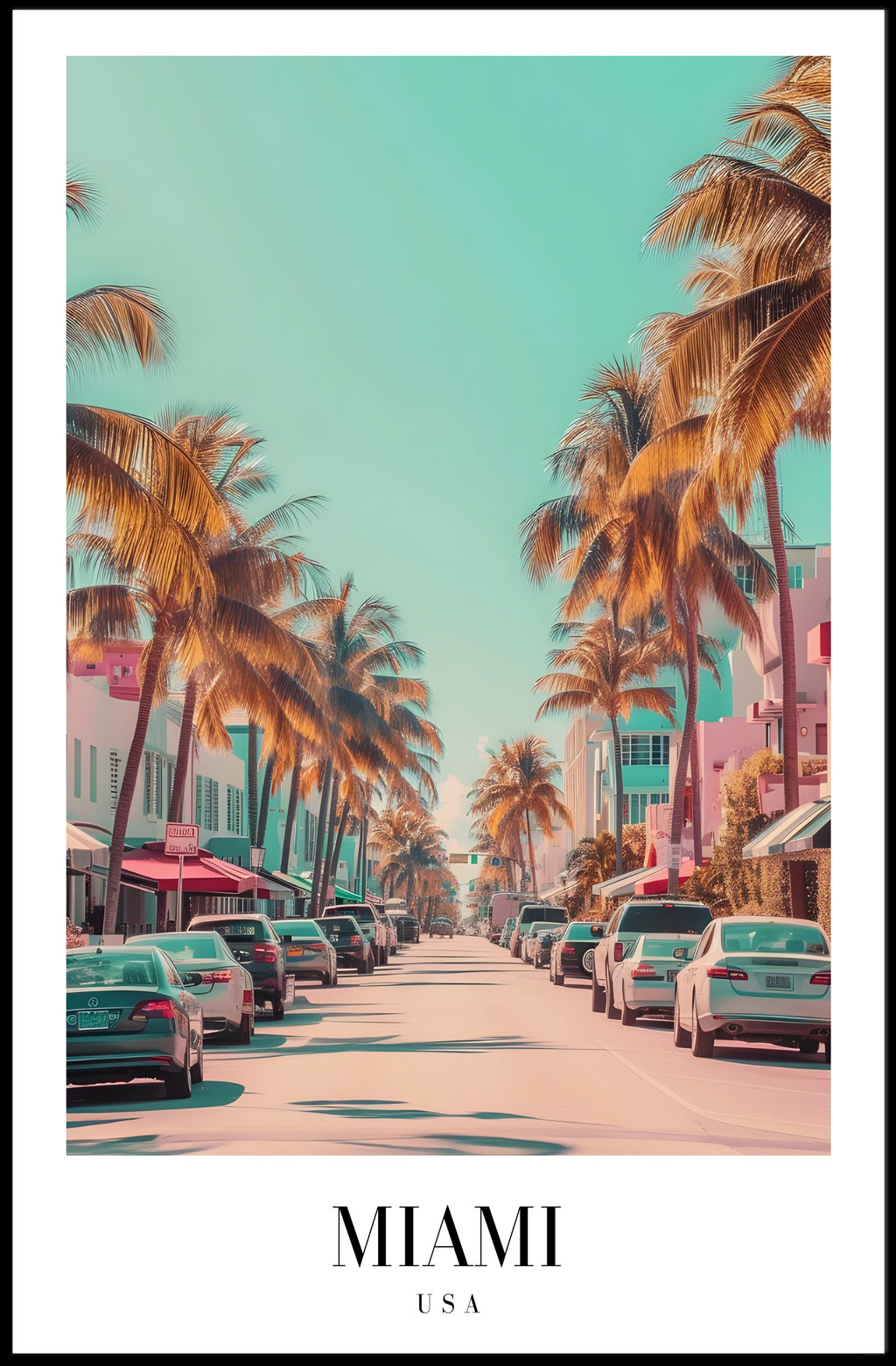 Add the Vibrant Miami Street Scene Vintage Urban Cityscape Poster to your collection today — shop PosterGoat for museum-quality prints and fast shipping.
