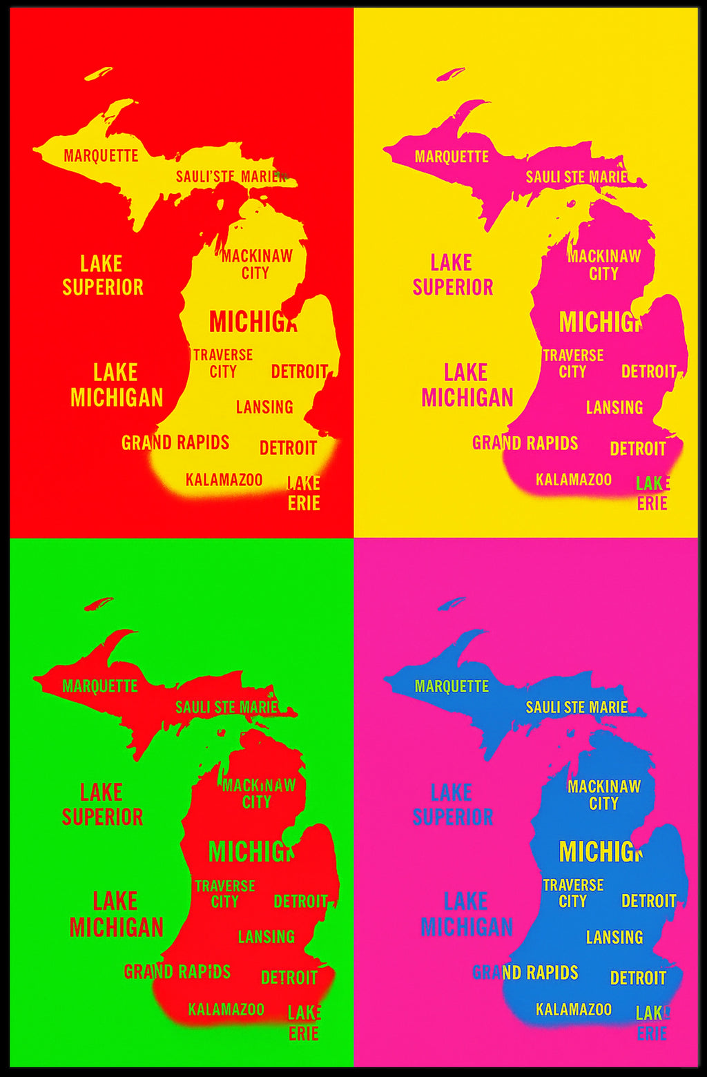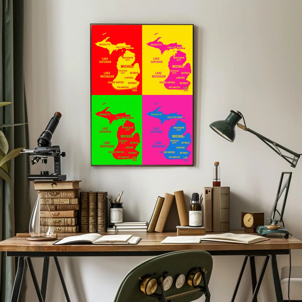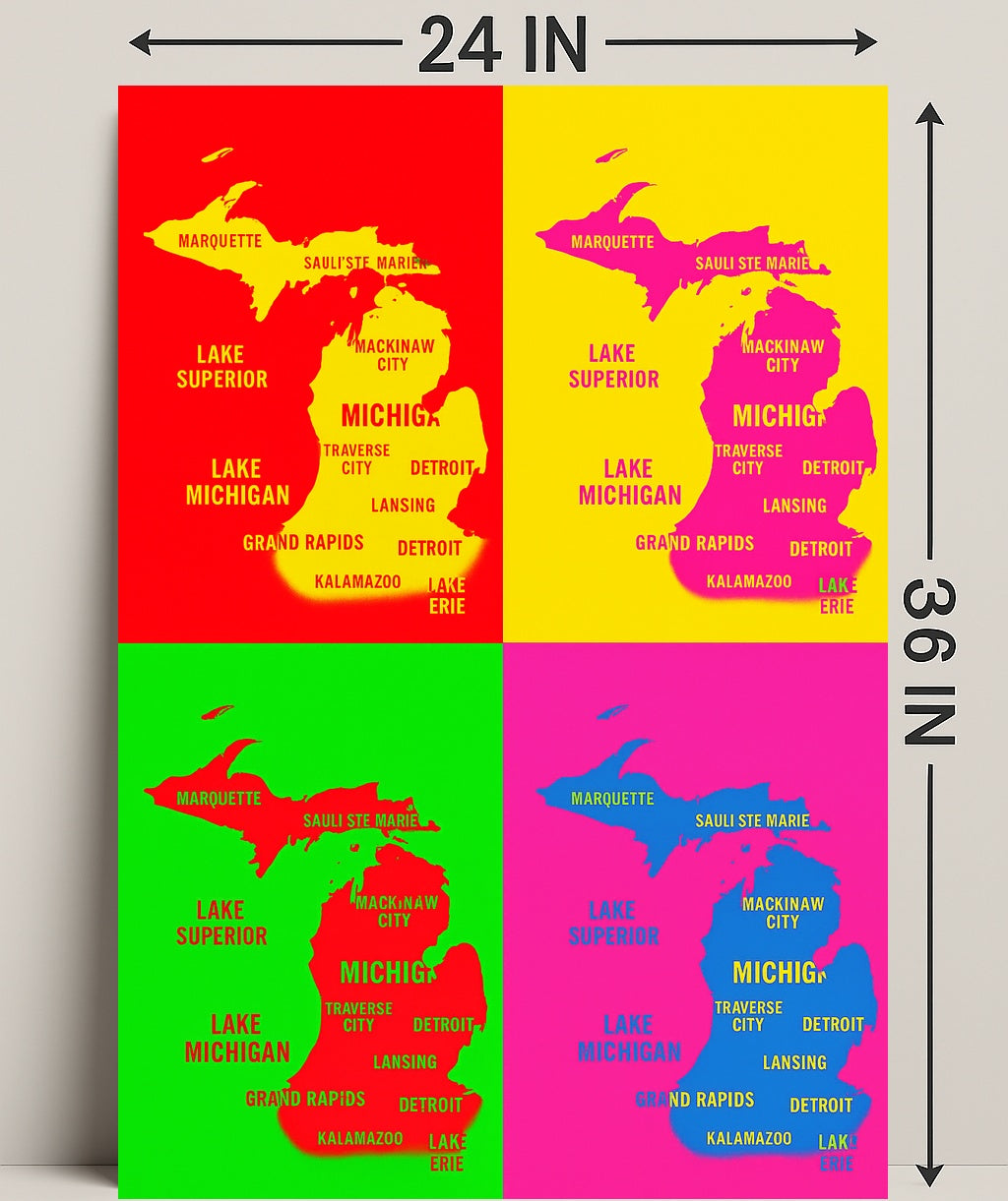 - Product Details — SKU: MWW-AG-156. Poster theme: Art & Aesthetic, Travel & Places. Style: Pop Art. Subtheme: map, michigan, vibrant.