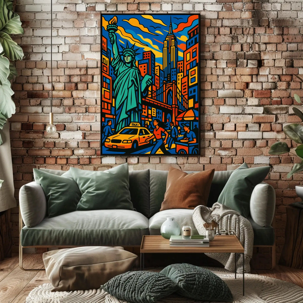 - Iconic landmarks like the Statue of Liberty and Empire State Building are rendered in saturated hues, creating an instant NYC focal point.