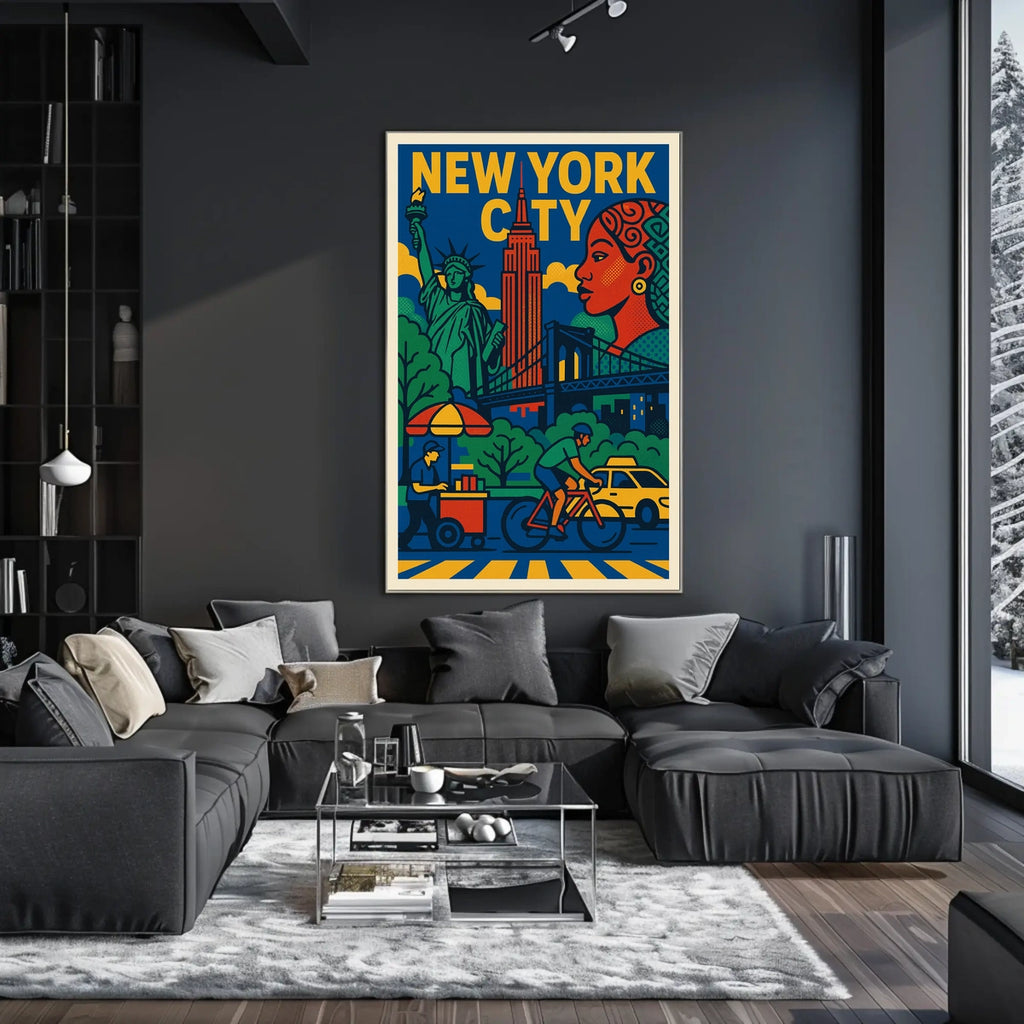 Bring the energy of New York City into your space with this vibrant poster. A striking focal point for living rooms, bedrooms, or offices, it invites admiration and conversation. Shop now to elevate your walls with iconic city vibes.