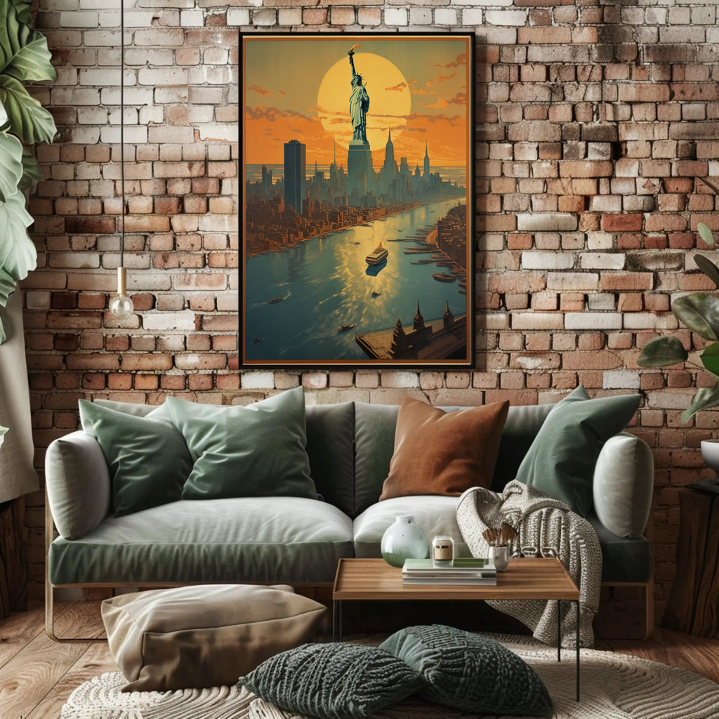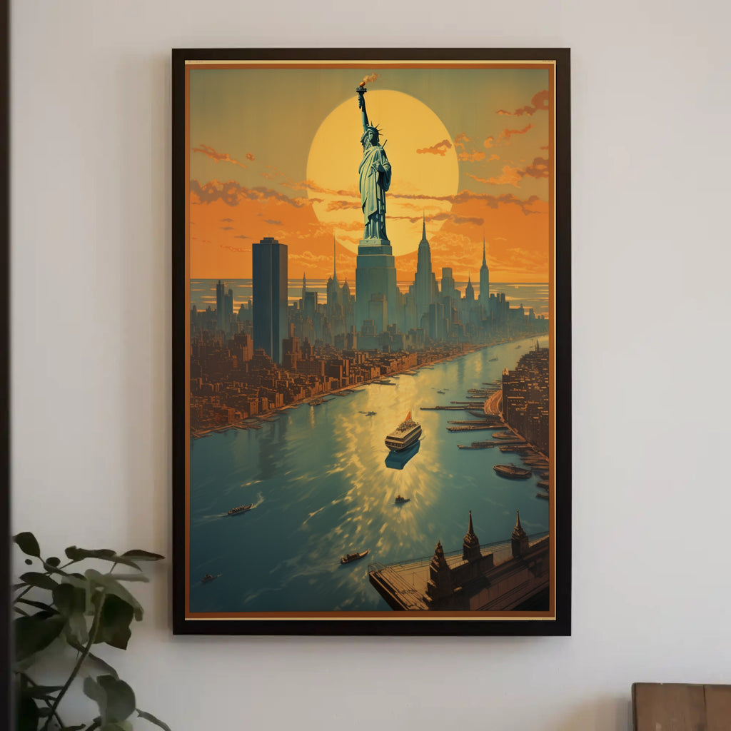 This imaginative New York skyline poster combines patriotic imagery with contemporary design to create a centerpiece that sparks conversation and nostalgia. Whether you love cityscape art, sunset posters, or Statue of Liberty artwork, this print makes a memorable addition to any collection.