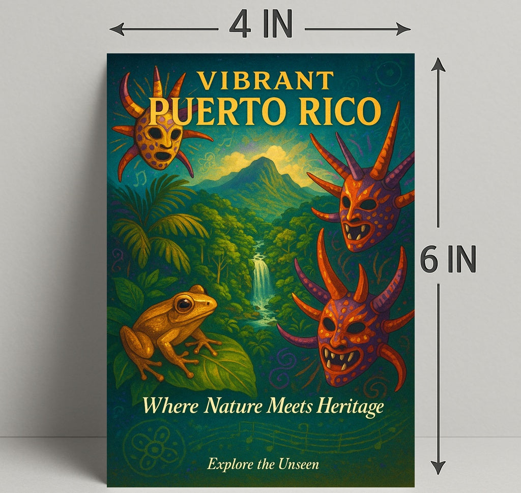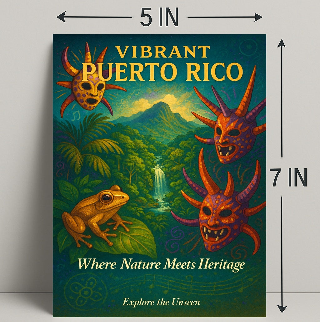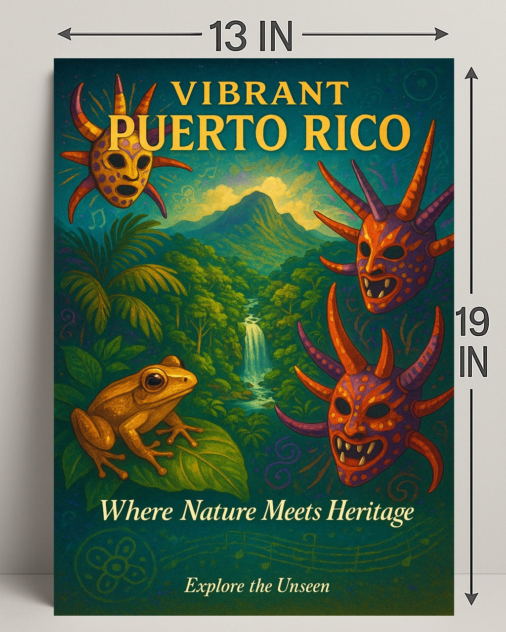 Stunning Artwork: Featuring a colorful depiction of Puerto Rico’s lush landscapes and vibrant traditions, this poster is a feast for the eyes.