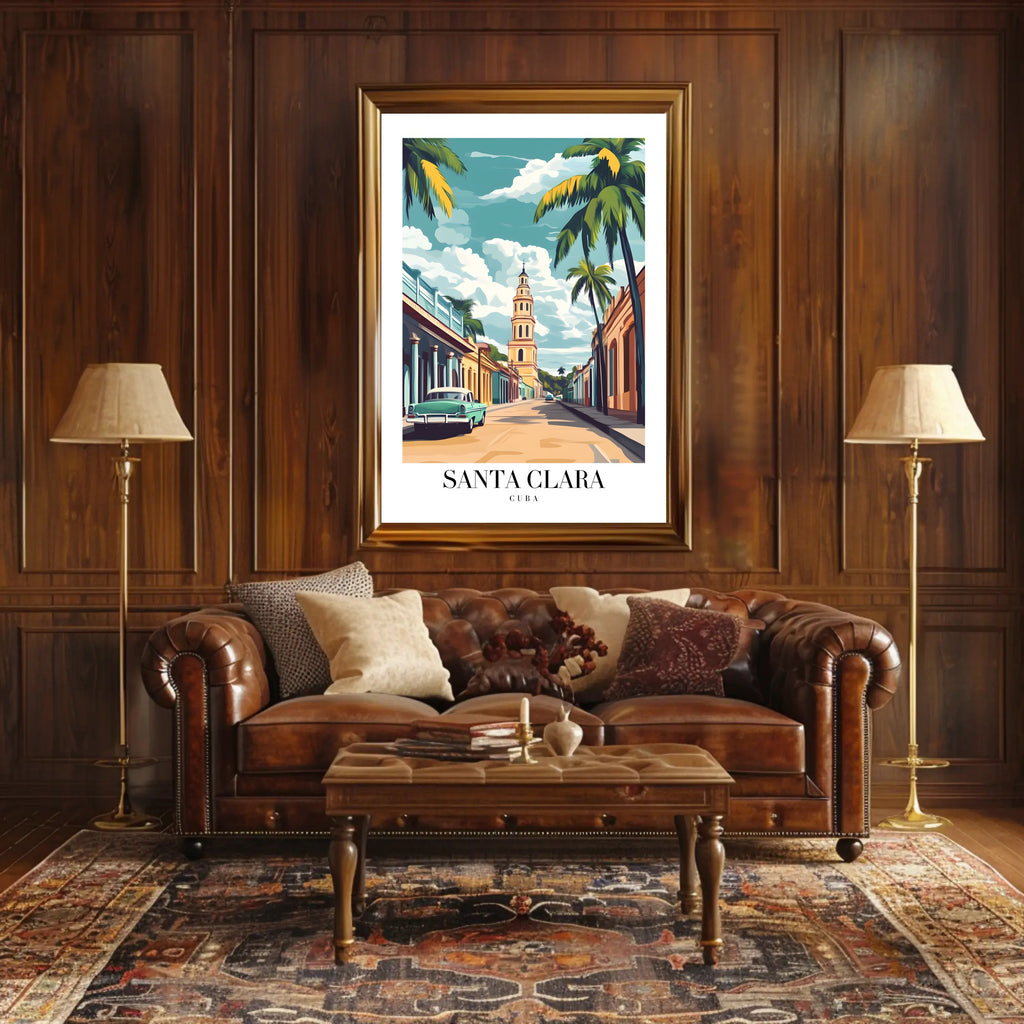 Add the Vibrant Santa Clara Street Scene Travel Poster to your cart today and transform any room with a timeless slice of Cuban street life. Perfect for homes, rental properties, cafes, and travel-inspired spaces.