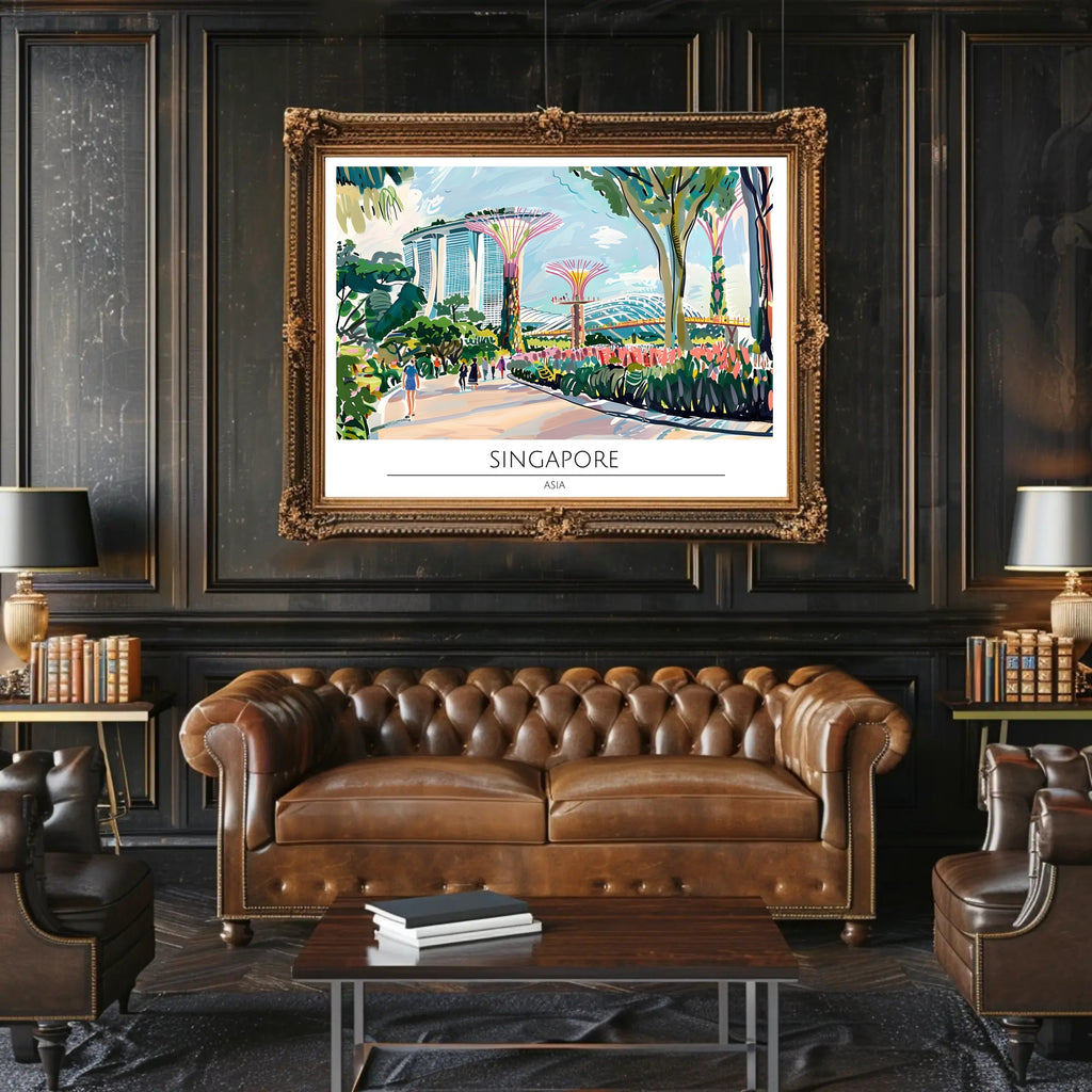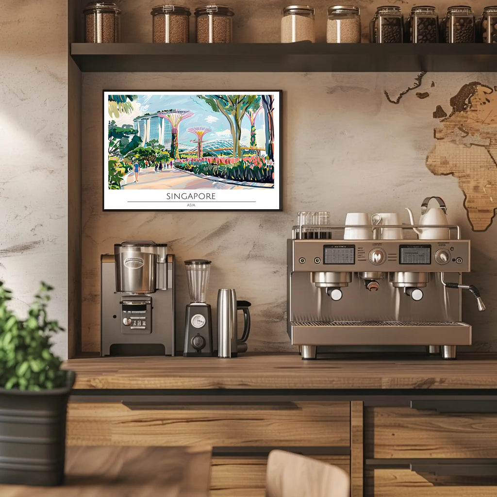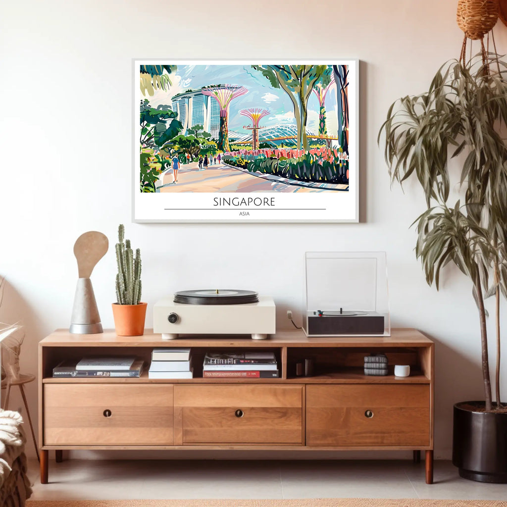 Whether you're decorating a living room, coffee nook, or office, this colorful Singapore poster injects warmth, movement, and wanderlust into any space. Add the Vibrant Singapore Poster from PosterGoat to your cart today and transform your wall with a modern travel classic.