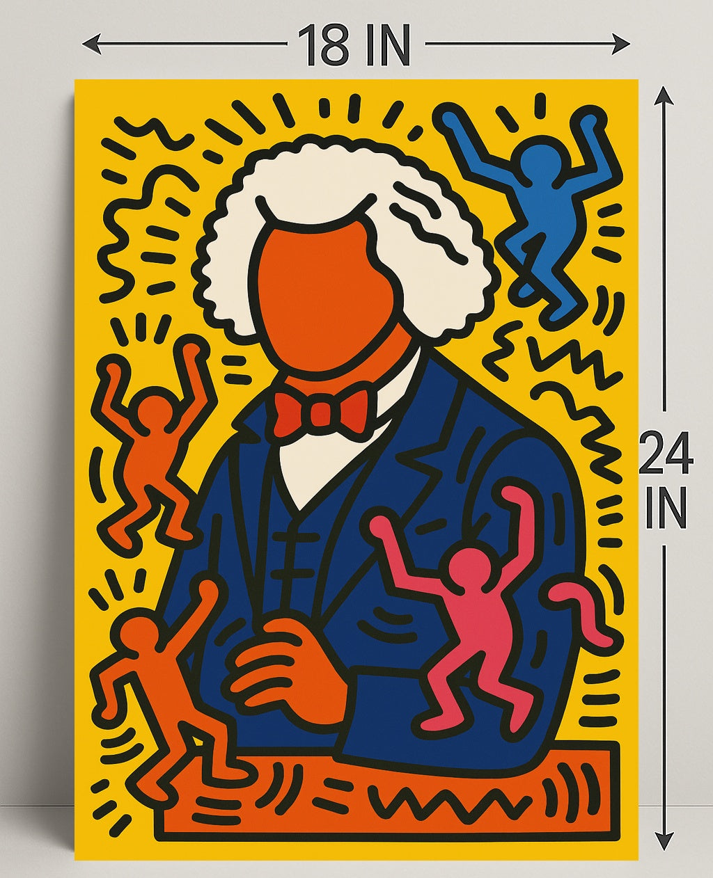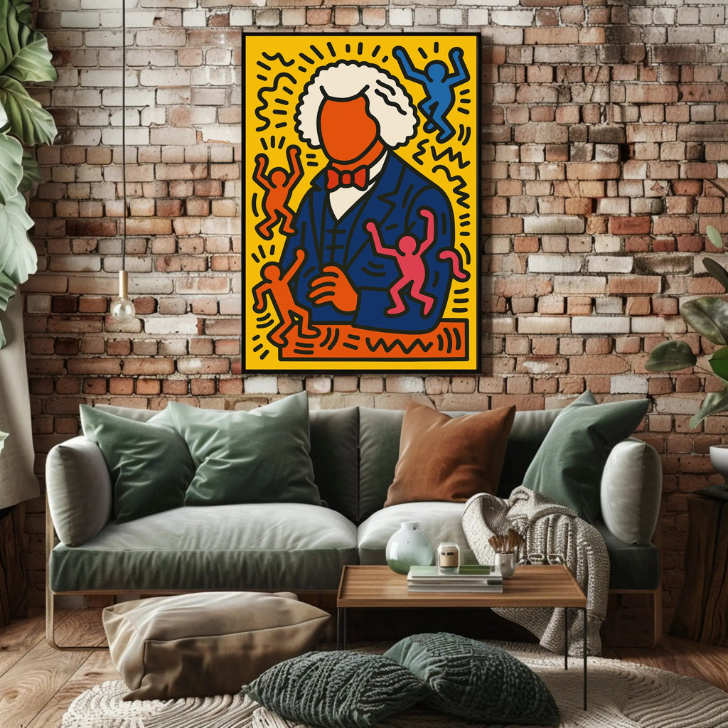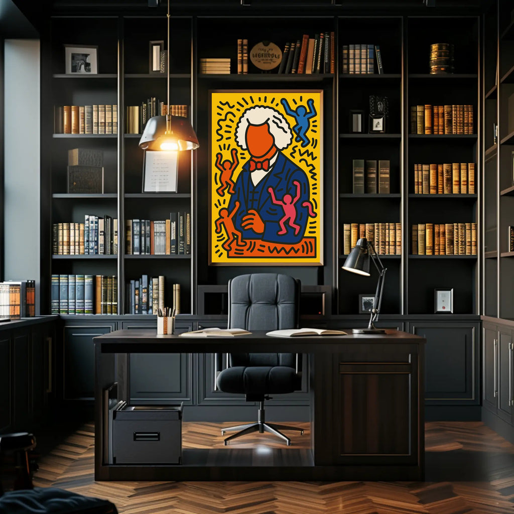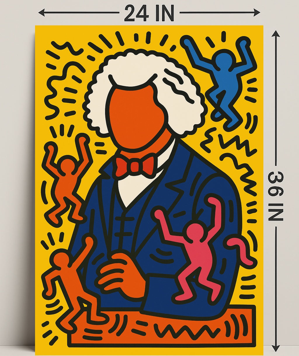 Bring bold color and playful energy to your walls with the Vibrant Tribute Poster from PosterGoat. This eye-catching pop-art print features a striking yellow background, thick black outlines, and lively, dancing figures surrounding a classic portrait silhouette — a modern tribute that fuses scenic inspiration with contemporary street-art vibes. Perfect for living rooms, offices, galleries, or as a standout gift for art lovers and collectors.