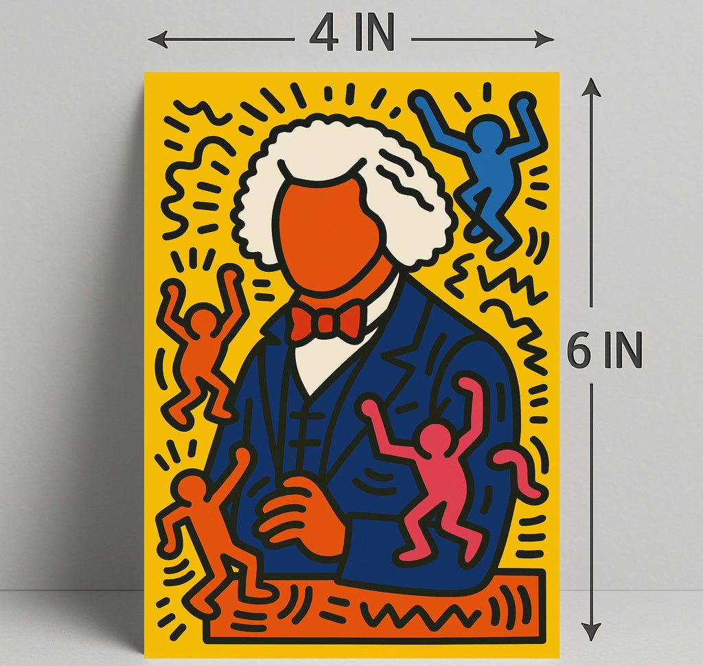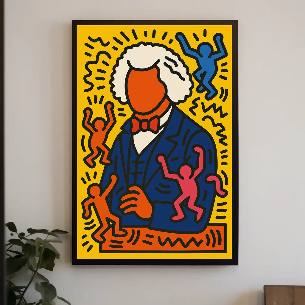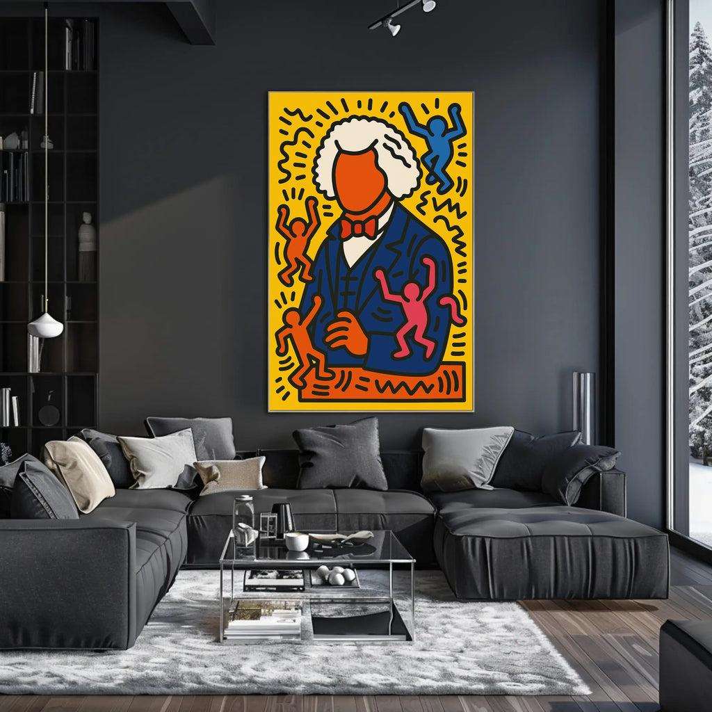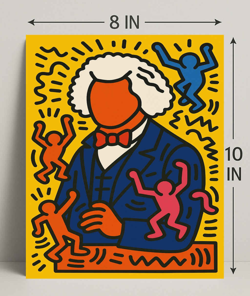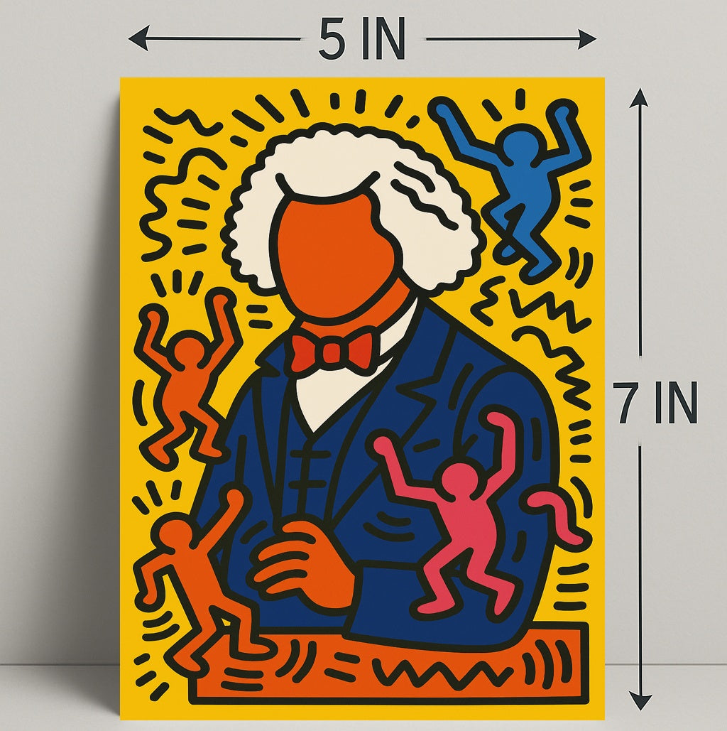 Bring bold color and playful energy to your walls with the Vibrant Tribute Poster from PosterGoat. This eye-catching pop-art print features a striking yellow background, thick black outlines, and lively, dancing figures surrounding a classic portrait silhouette — a modern tribute that fuses scenic inspiration with contemporary street-art vibes. Perfect for living rooms, offices, galleries, or as a standout gift for art lovers and collectors.