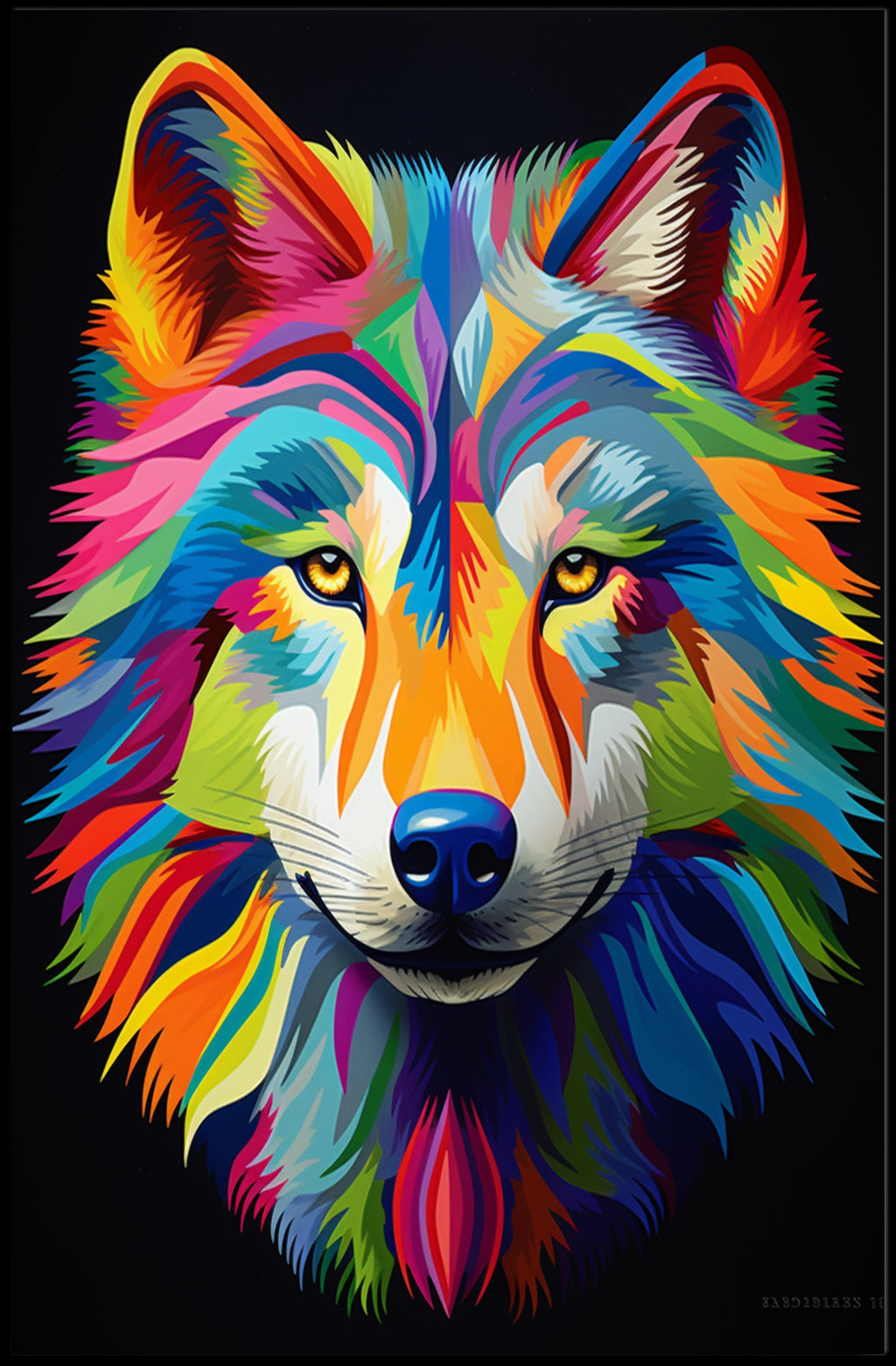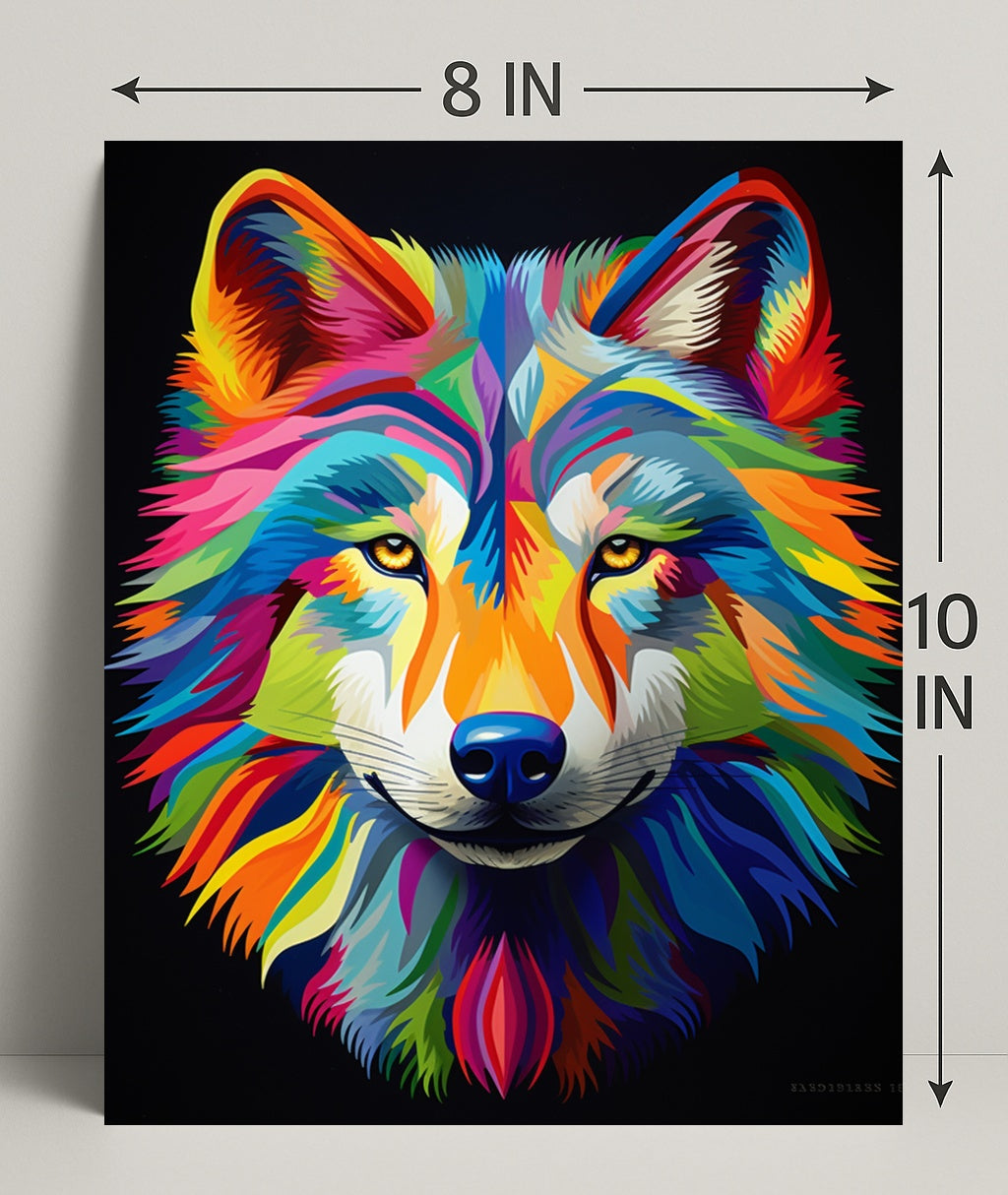 - Eye-catching pop art style: Dynamic brushlike shapes and a rainbow palette give this wolf portrait a contemporary, gallery-ready look perfect for living rooms, bedrooms, studios, or offices.