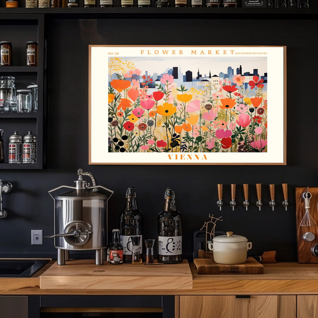 Theme & style: Art & Aesthetic, Travel & Places — Pop Art; subtheme: flower market, vienna, cityscape