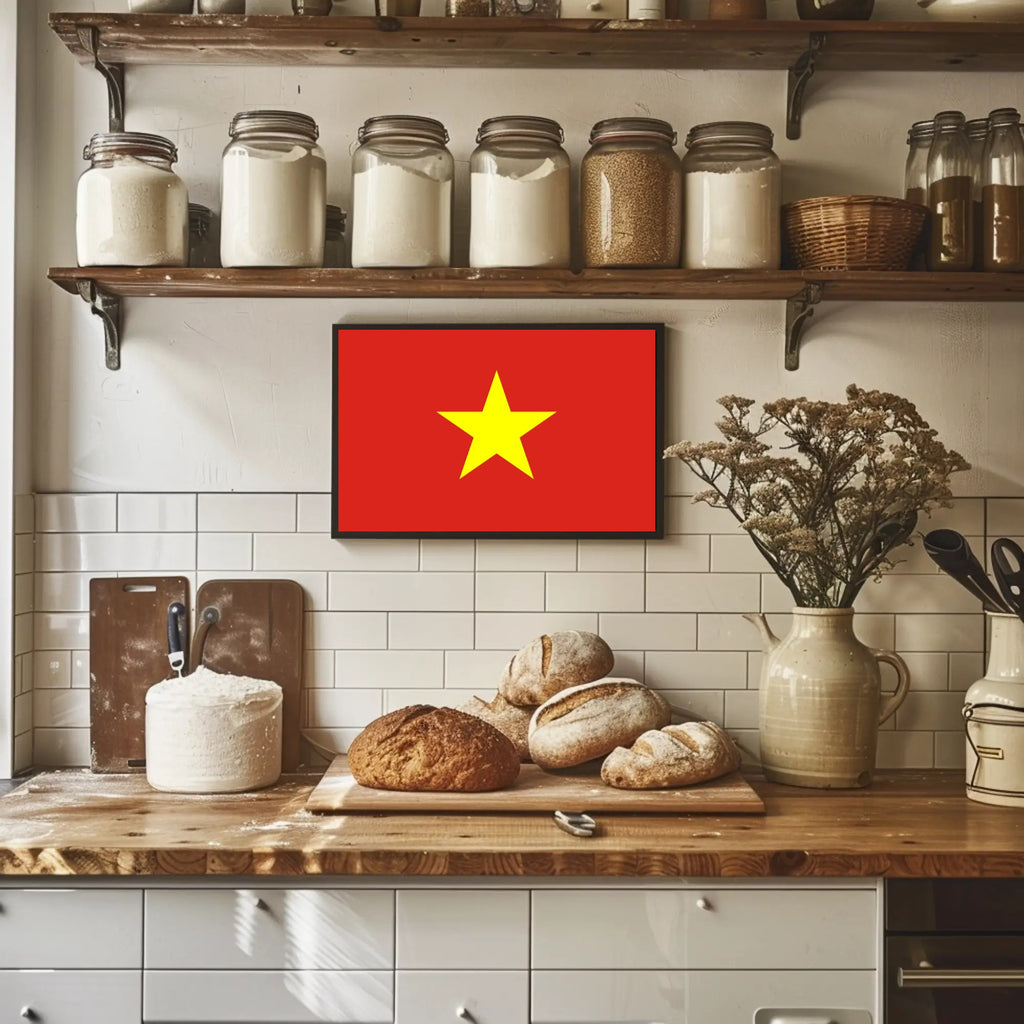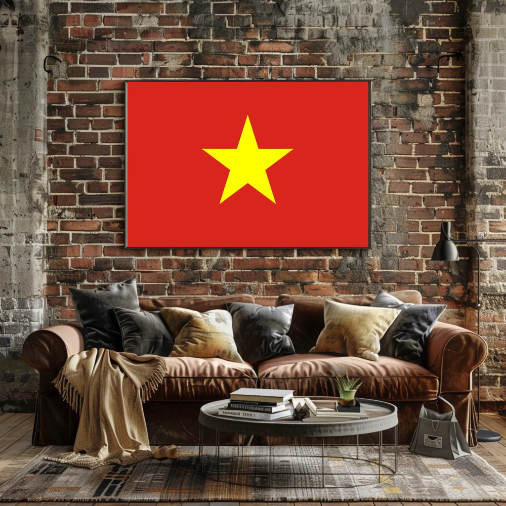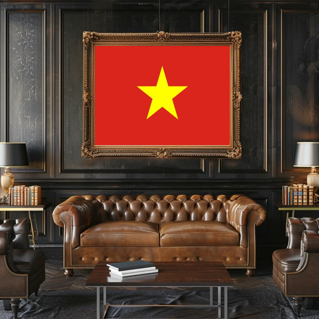 Bring a powerful symbol of national pride into your space with this Vietnam Flag Poster from PosterGoat. Featuring a bold, minimalist composition — a bright yellow five-point star centered on a vivid red field — this 18x24 poster delivers striking visual impact and cultural significance for any room, office, or public space.